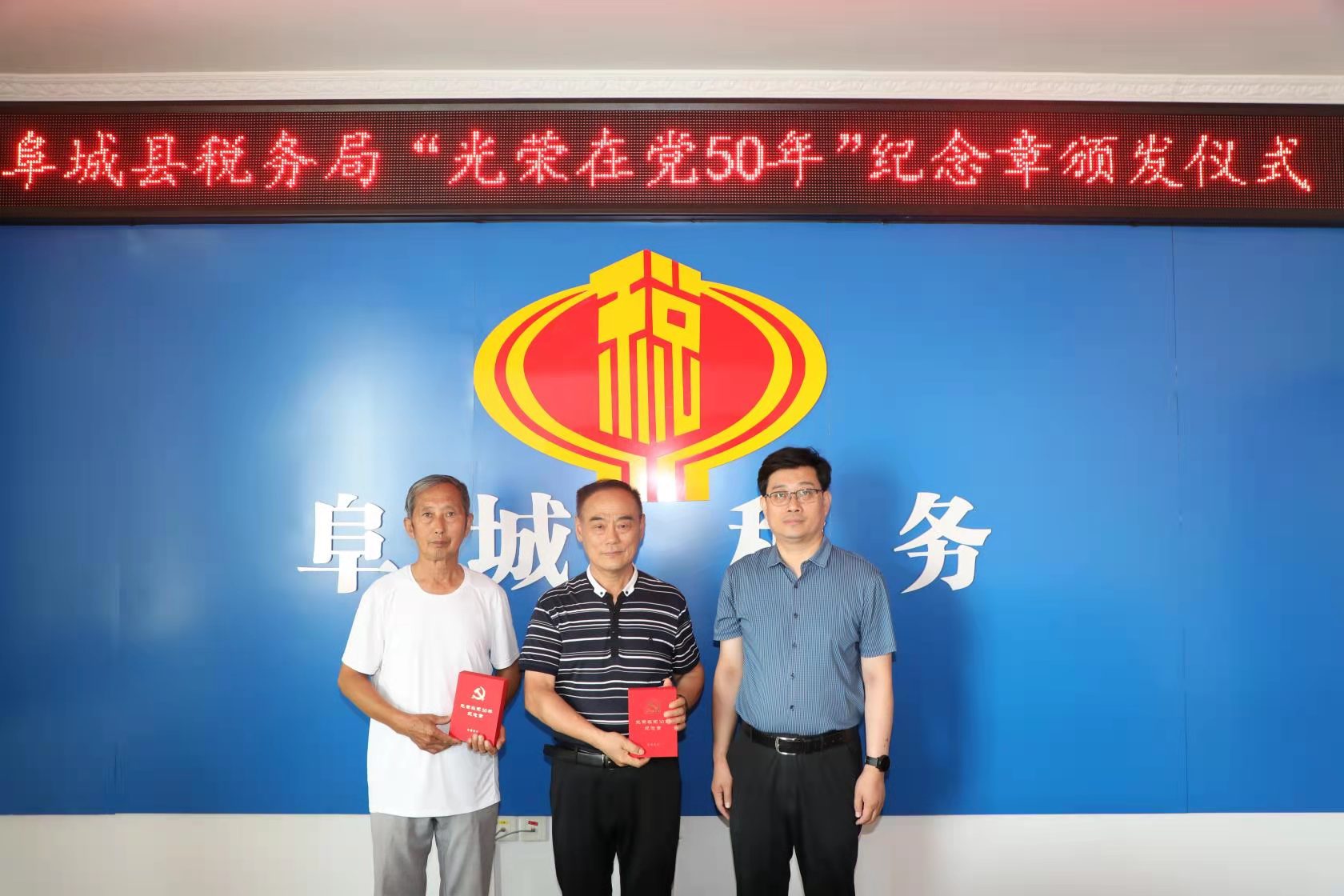 阜城縣稅務局為“光榮在黨50年”黨員代表頒發紀念章