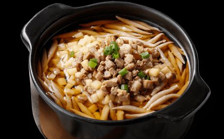 此時,在腌制羊肉的碗中加入蔥姜末和鹽,鋪上蘑菇丁,倒入泡好的花椒、大料水,再加少量水,與莜面一起放在鍋中蒸熟。待莜面蒸熟,將莜面魚放進羊肉蘑菇湯中就可以大口開動啦!