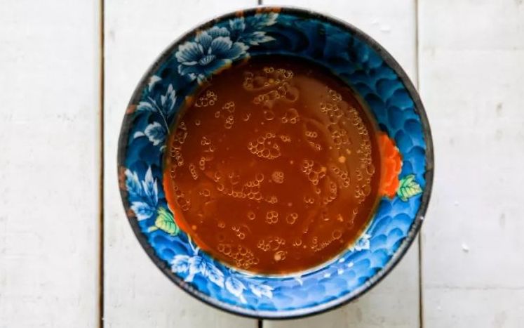 4. 調(diào)制醬汁:蘿卜片腌制出比較多的水分倒掉,再用清水洗掉蘿卜片的咸味。