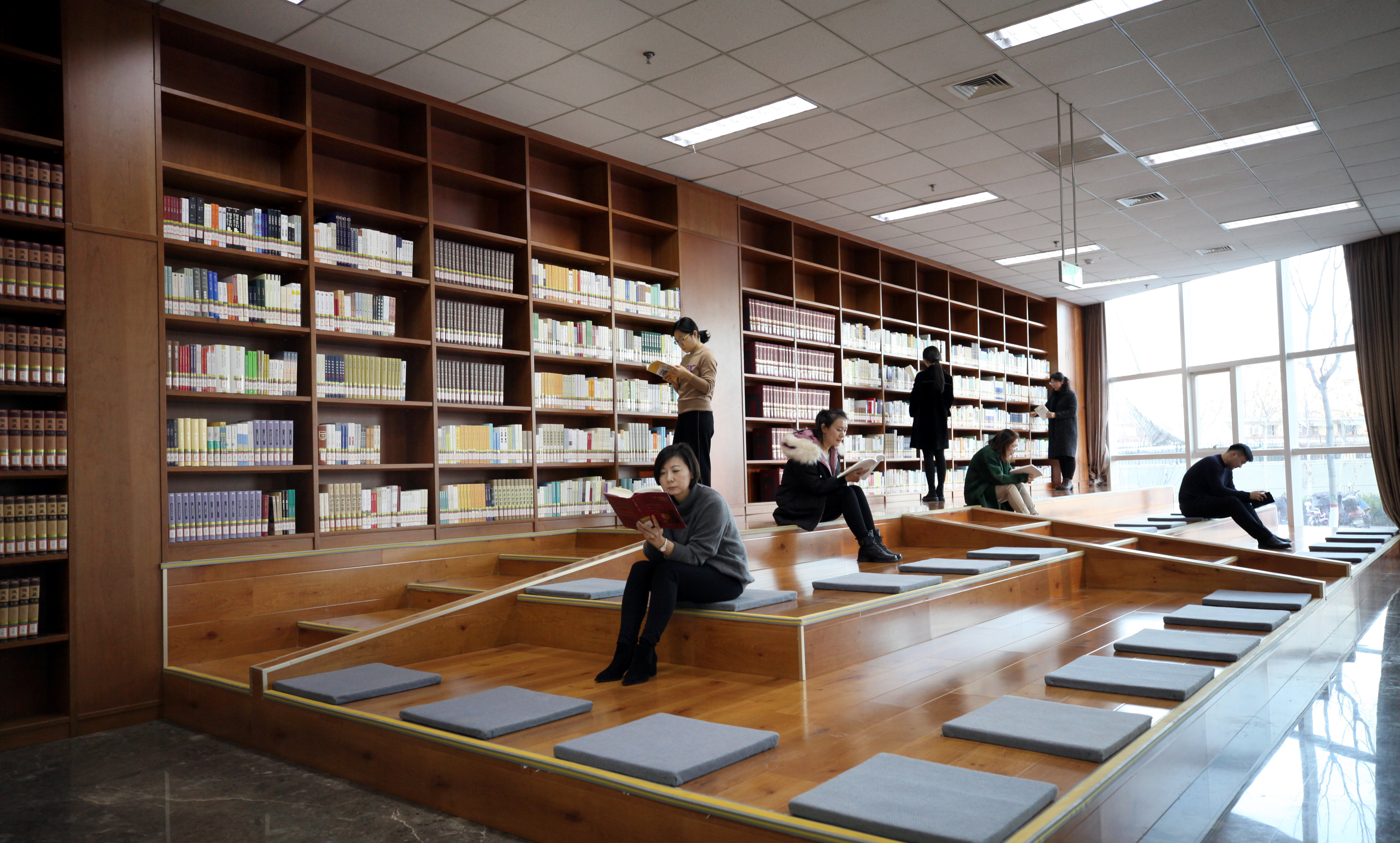 文學閱覽室總面積462.6㎡,位于圖書館的三樓,本層現有18張閱覽桌,108個座位,23個書架,2.3萬余冊圖書。