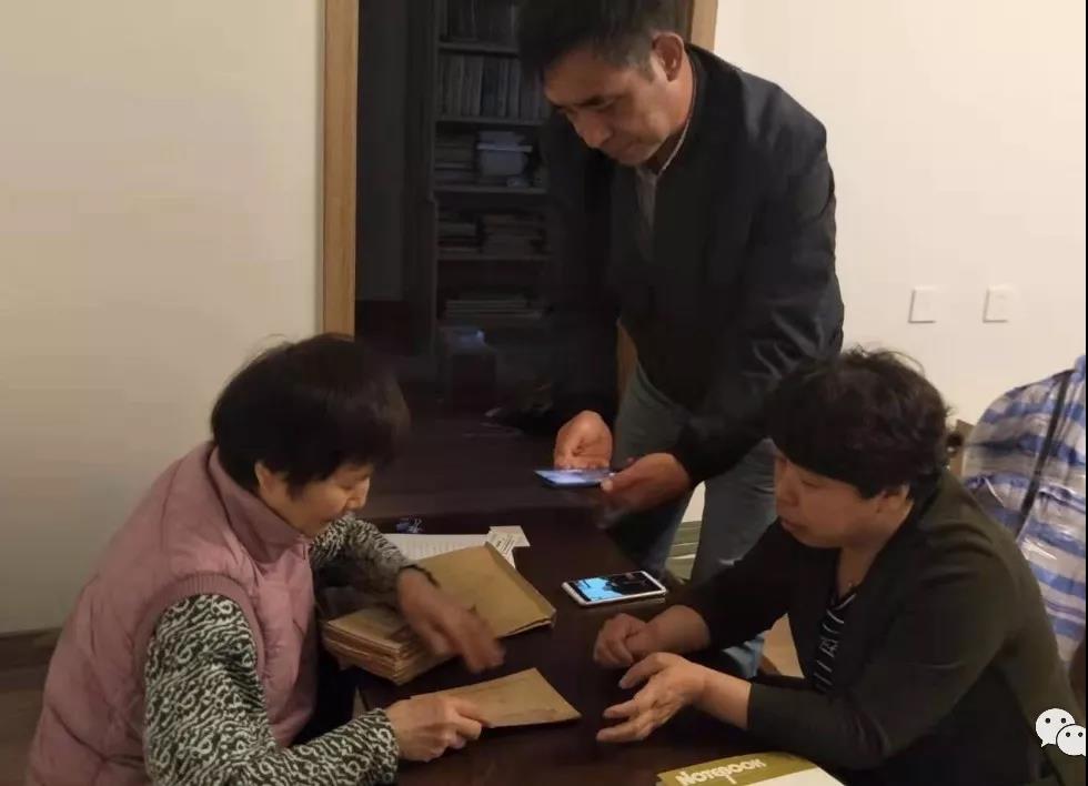 采訪《冀中導(dǎo)報》編輯部主任杜敬的女兒杜小波(左一)