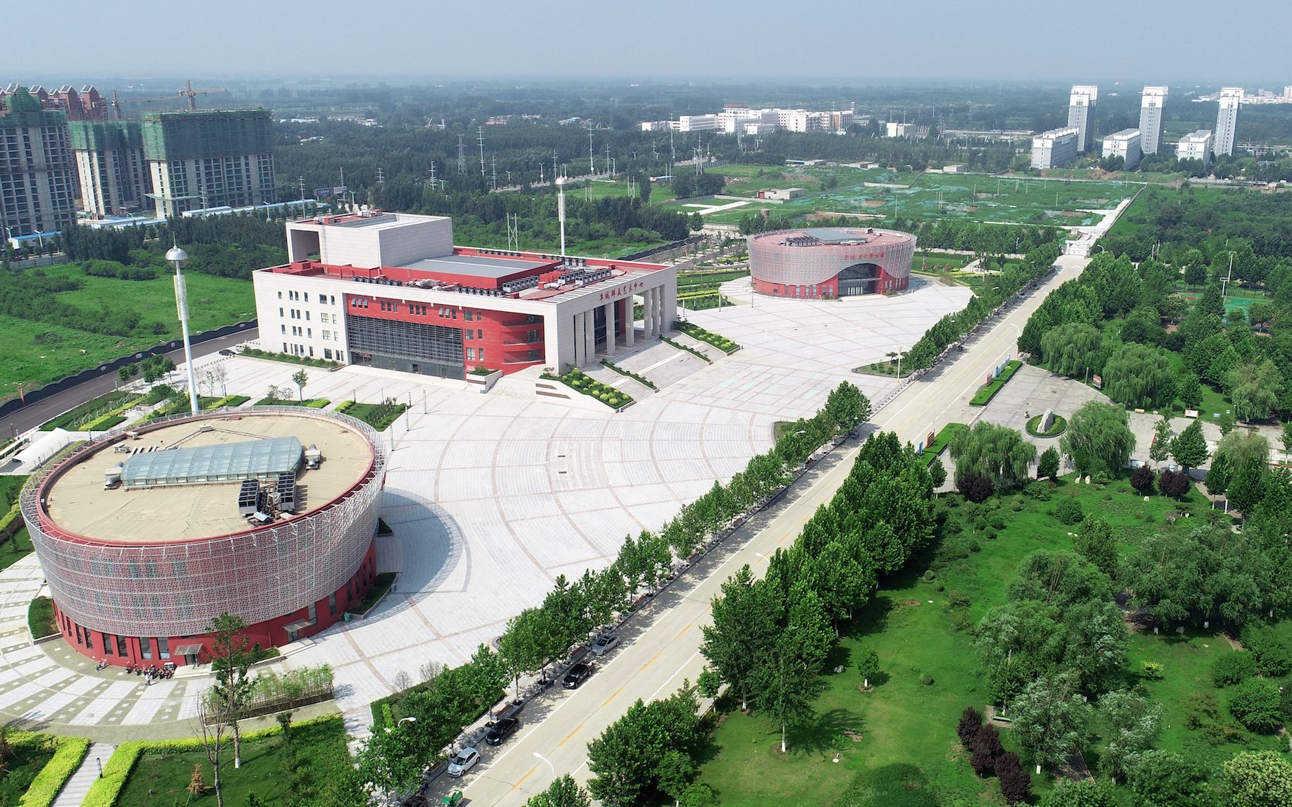 近年來,阜城縣高度重視經(jīng)濟與文化的協(xié)同發(fā)展,把文化提升作為推進新時代經(jīng)濟強縣、美麗阜城建設的主體戰(zhàn)略之一,興建的“四館一中心”(群眾文化藝術中心、歷史博物館、規(guī)劃展覽館、科技館、剪紙博物館),帶動全縣公共文化基礎設施提檔升級。外觀呈方形的群眾藝術中心居中,圓形的規(guī)劃展覽館和其他三館分居東西兩側,紅色的主體建筑,外罩白漆鋼架,整個館群造型美觀大氣,富有現(xiàn)代氣息,成為城市文化的新地標。圖為“四館一中心”航拍圖。