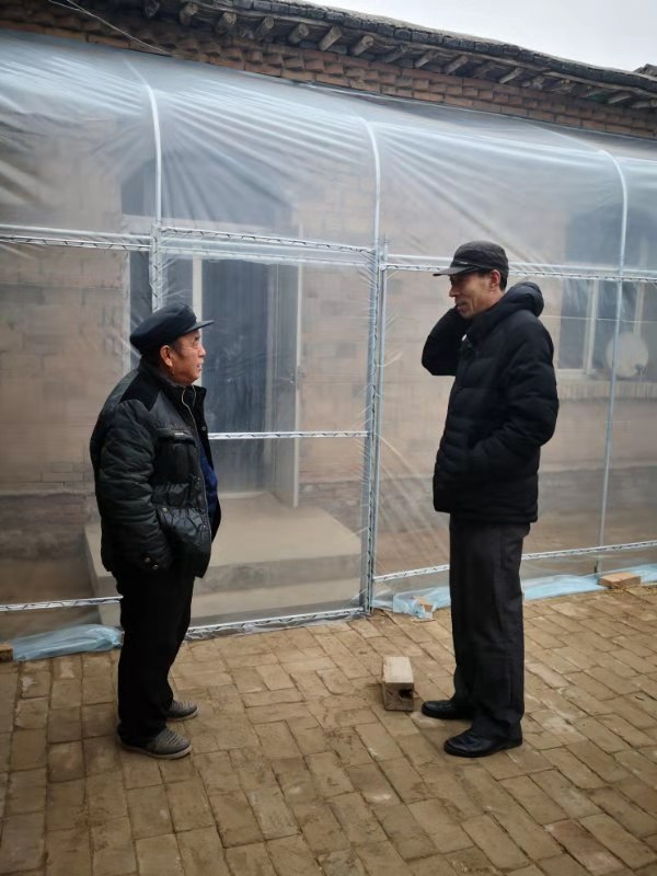 去年冬天,市委宣傳部駐劉家莊扶貧工作隊隊長馬三坤走訪貧困戶時發(fā)現(xiàn),他們雖然都安裝了燃氣供暖爐,但都舍不得用天然氣取暖,嫌花費太高。他想,這幾戶貧困戶多是單身老人,萬一凍壞怎么辦?另外,許多農(nóng)戶也怕燒氣花錢多,就用柴草燒火炕。他看在眼里,急在心里,積極想解決辦法。他聽說東北農(nóng)村有人在北房屋檐下,安裝塑料大棚,把門窗都扣在大棚里,抵御嚴寒。于是,他就聯(lián)系施工隊,購買塑料薄膜和鍍鋅鋼管,為貧困戶免費安裝上供暖棚。