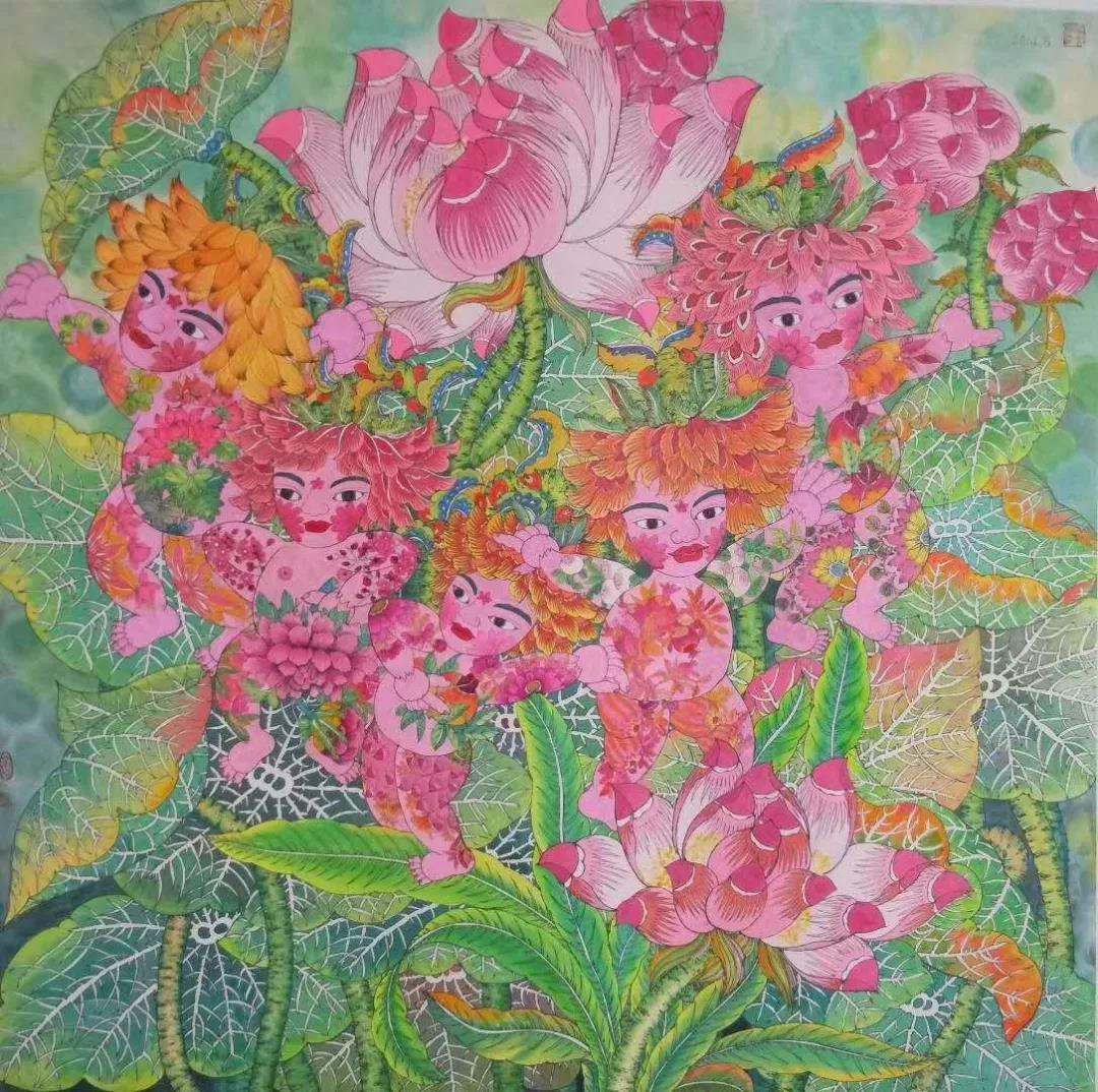 她的作品是以自然界植物和動(dòng)物為對(duì)象,把自己的心靈世界與對(duì)象的心靈世界打開一個(gè)通道,產(chǎn)生一個(gè)奇跡,人與植物、動(dòng)物開始心與心的對(duì)話,她能夠讀懂它們的語(yǔ)言,它們也能讀懂她的語(yǔ)言,她不是在做畫,是在和她的高粱、大樹,小草,花朵,小狗,小鳥,一起玩耍,你中有我,我中有你。