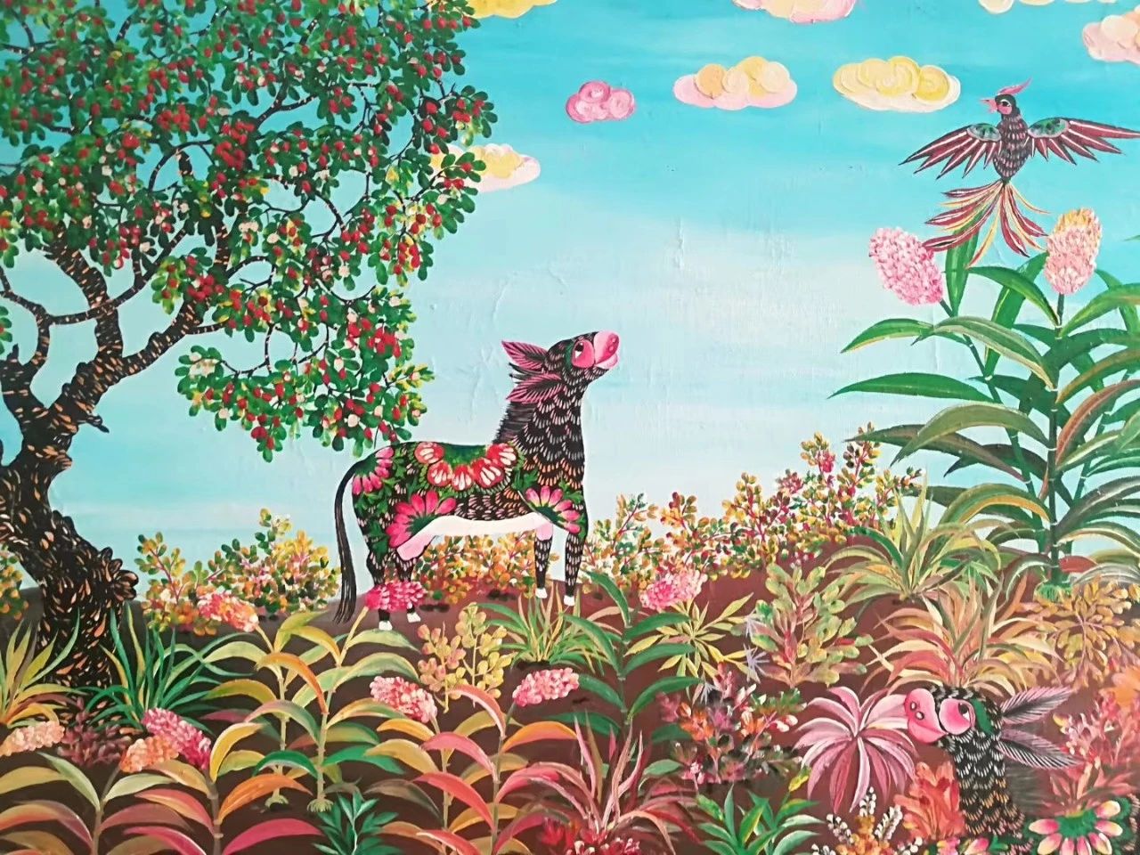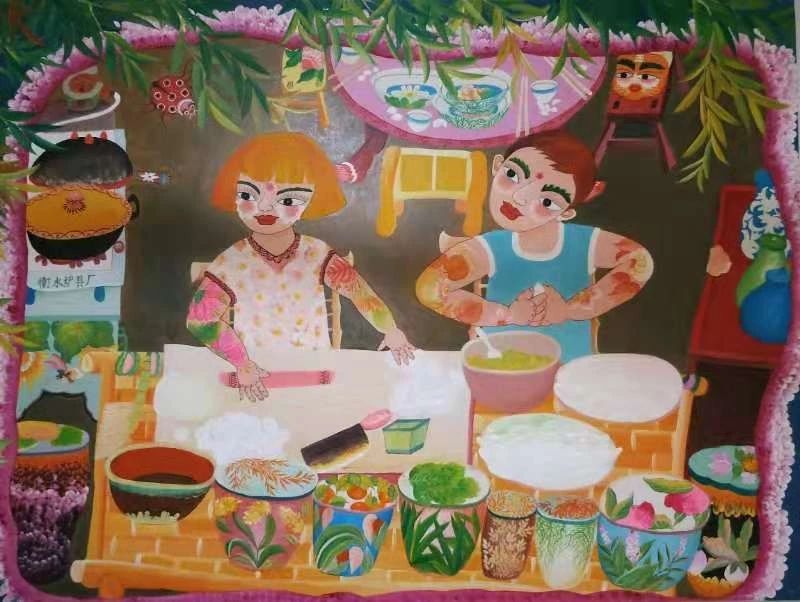 乙巳年臘月十三,村里的年味越來(lái)越濃,家家戶戶忙碌著,殺豬、宰羊,趕集、趕廟,買春聯(lián)、買年畫、買花布、買鞭炮,推碾子推磨,磨白面粘面小米面,蒸饅頭、蒸花糕、蒸絲糕、蒸年糕,炒瓜子炒花生,油炸豬肉丸子,油炸豆腐丸子,油炸散子,自家熏香腸,大鍋煮肉,一香香半道街。勤快的人們,早早在門前掛起紅燈籠,貼上對(duì)聯(lián)。最高興的是孩子們,盼了一年呀,終于可以穿新衣服、吃花糕、吃餃子嘍。