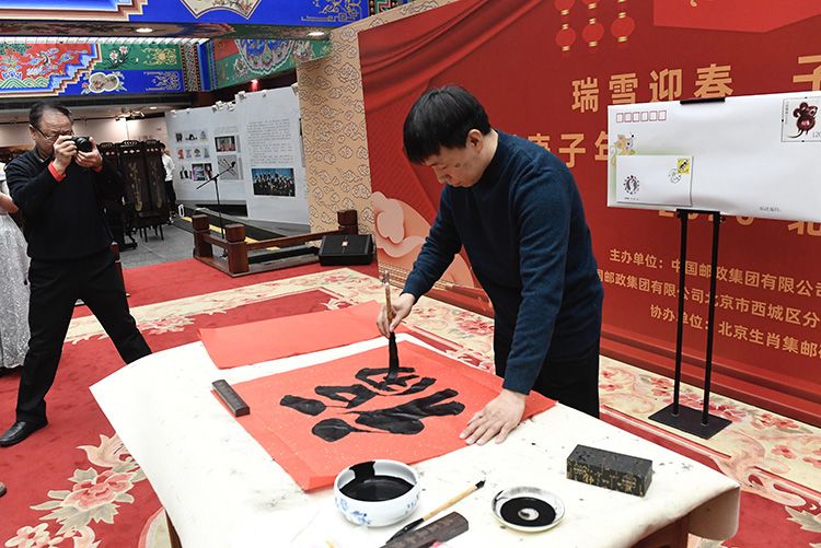 書(shū)法家夏元樸現(xiàn)場(chǎng)書(shū)寫(xiě)福字。