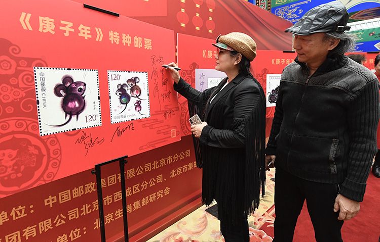 鼠年封中封的設(shè)計(jì)者李印清為觀(guān)眾簽名。