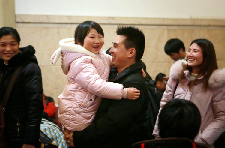 1月9日深夜,北京站候車室,小女孩趴在爸爸的懷里,準備登上回家的旅程。