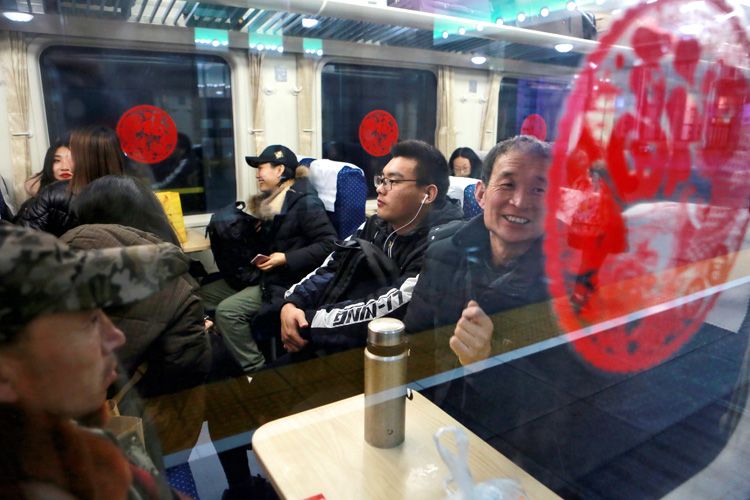 1月10日零時許,在春運首趟增開的北京——南通K4051次列車上,人們等待列車發車。