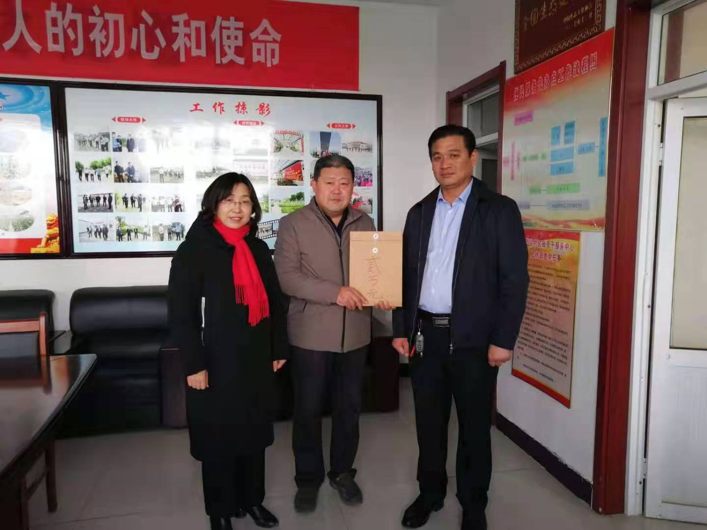 為支持家鄉發展和促進脫貧攻堅工作,吳勝利將2萬元慰問金送到阜城縣阜城鎮馮塔頭村黨支部書記馮國躍手中,代表企業向馮塔頭村村民及辛苦奮戰在脫貧攻堅戰線的同志們表示春節前的問候,希望家鄉能夠發展得越來越好。