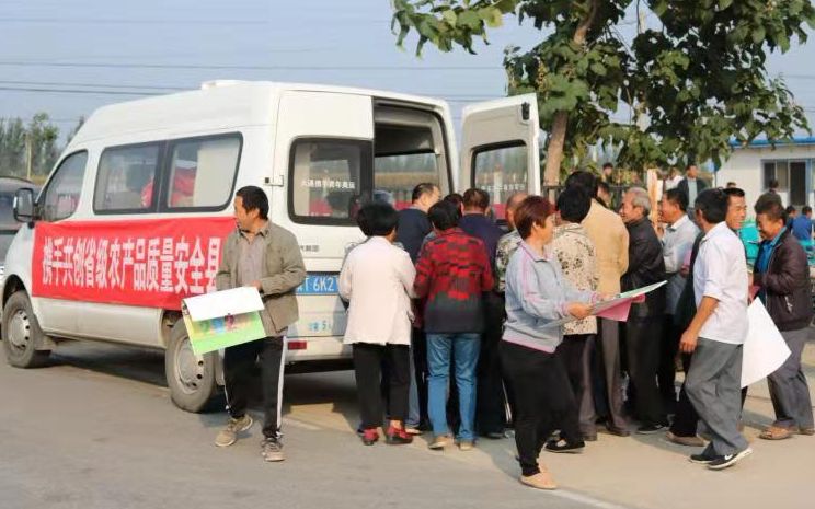 2019年秋,阜城縣農業(yè)農村局組織工作人員到碼頭鎮(zhèn)向農民們發(fā)放相關資料。