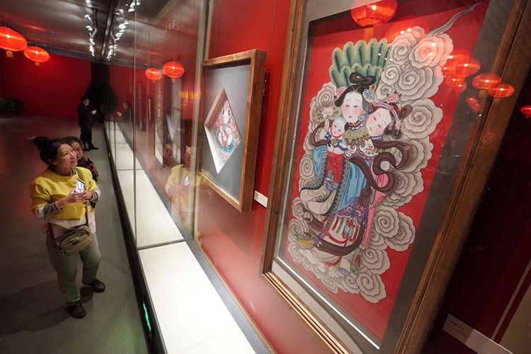 觀眾在欣賞姑蘇年畫和楊柳青年畫。
