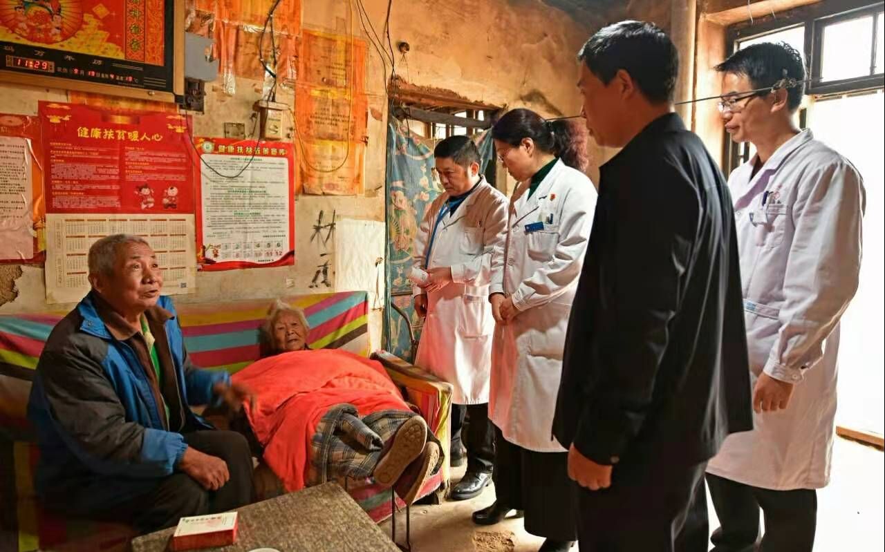 駐村工作隊隊長武瑞生(右二)帶領市五院愛心醫療隊到貧困戶家中義診。