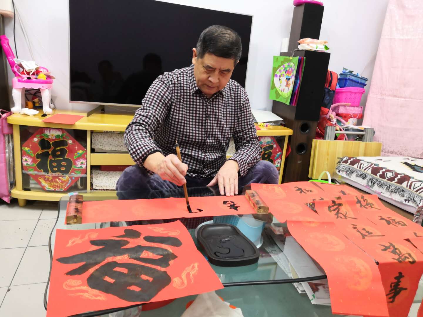 不僅自家張貼手寫春聯,每年他還要準備幾幅送給親朋好友。他說:“春聯和書法都是中國流傳千百年的優秀傳統文化,張貼手寫春聯,能夠讓更多人、尤其是孩子,了解學習傳統文化,增強老百姓的文化自信!”