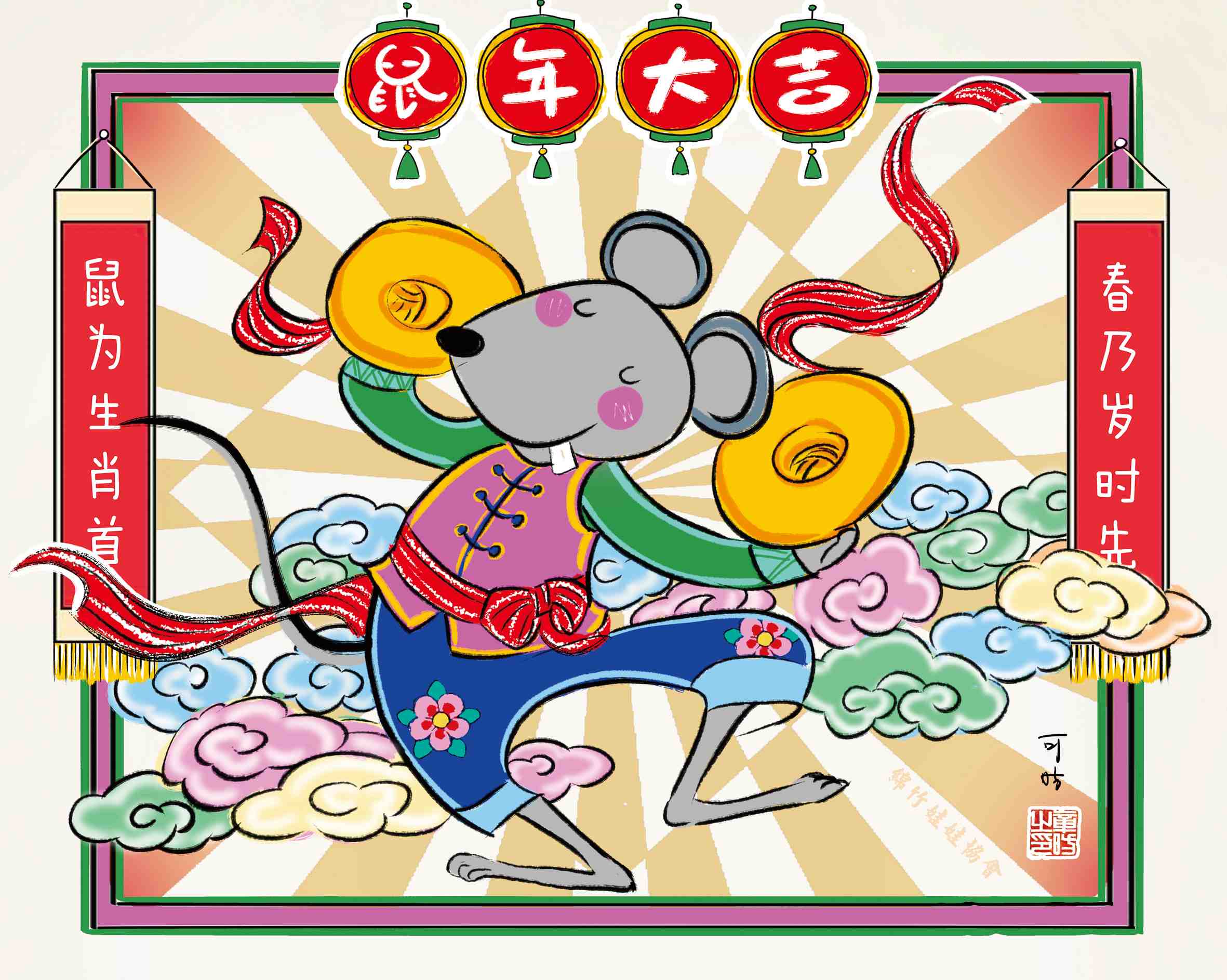 福美祥作坊創作的灘頭年畫《鼠慶豐年》