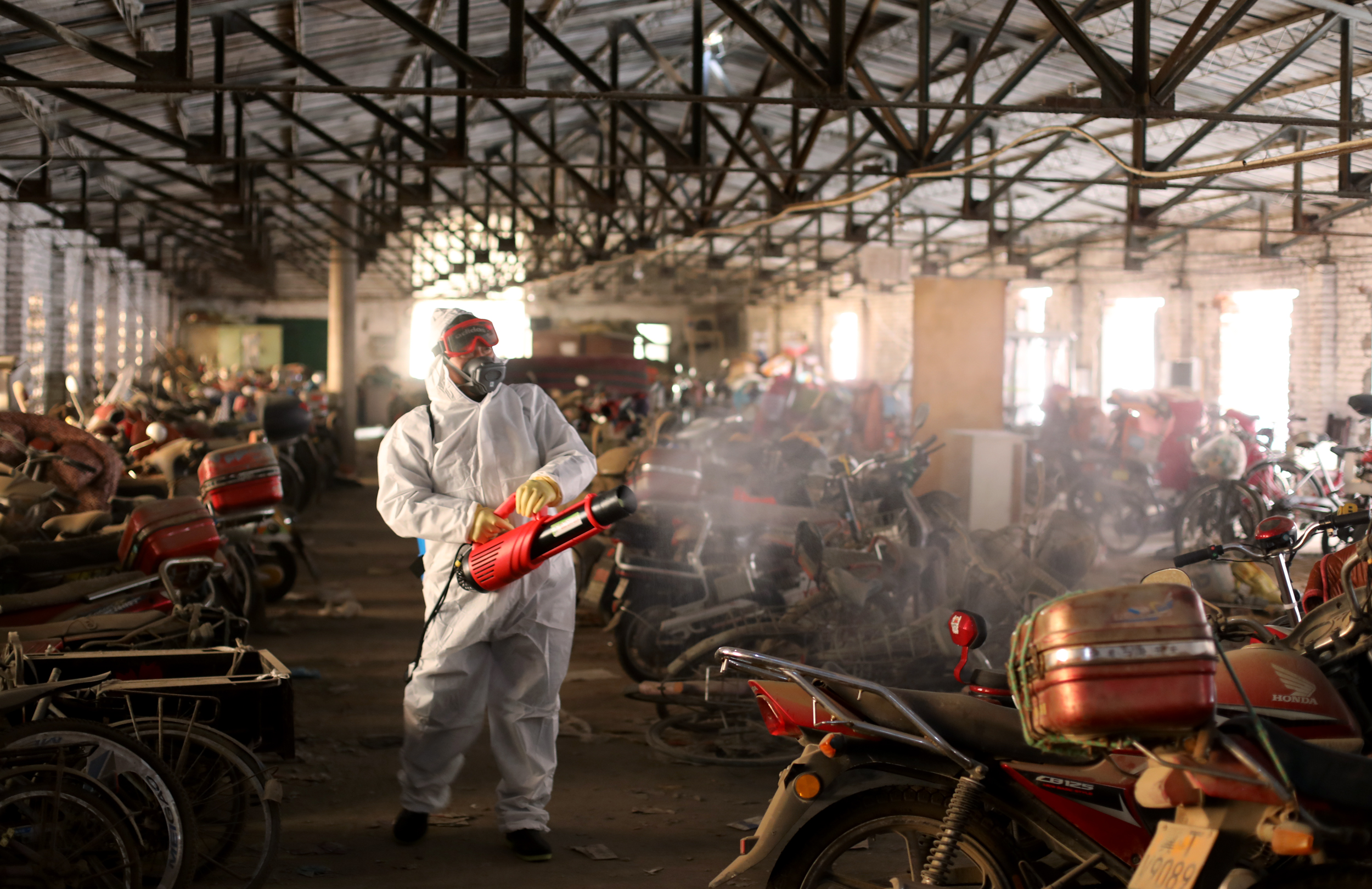 2月3日上午,春暉義工志愿者在利民社區老白干家屬院進行消毒作業。