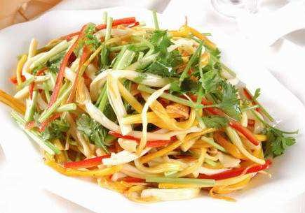 淋油:鍋中放入少許食用油和花椒,油溫升高后關火,將熱油淋到菜品上,攪拌均勻后即可食用。