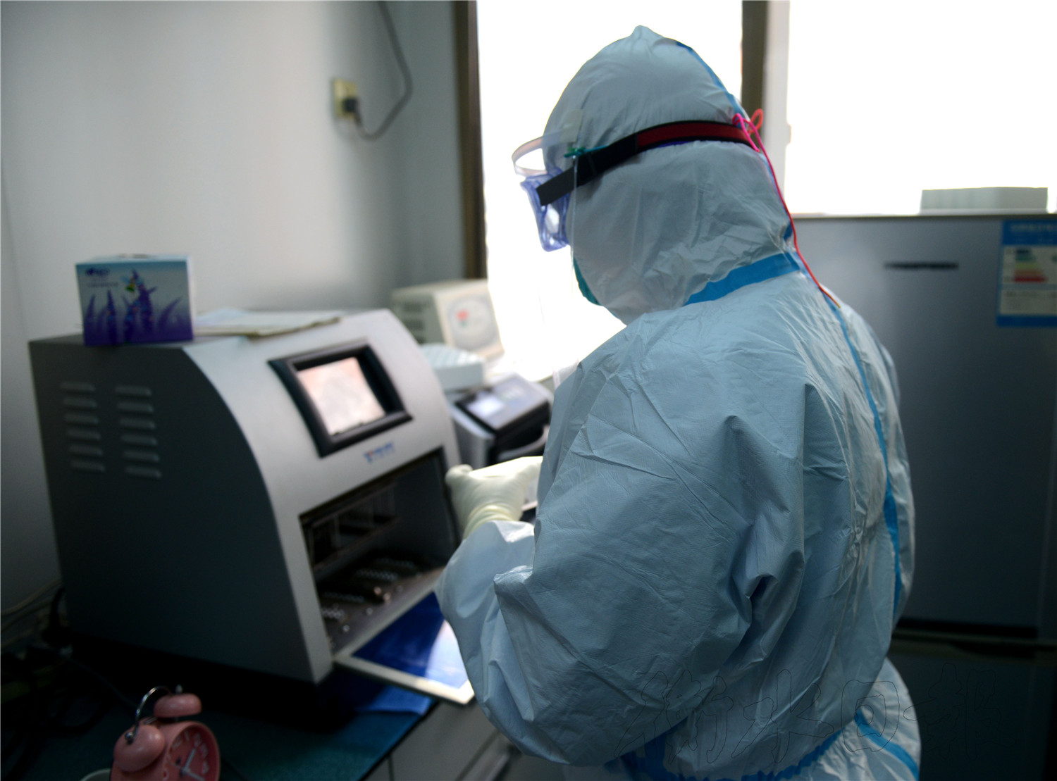 剛剛結束實驗的檢驗人員又一次開始了全副武裝,隔離衣、防護服、帽子、口罩、護目鏡、乳膠手套、鞋套……15分鐘后準備完畢。