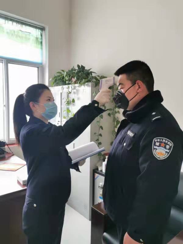 “小林,36.8℃,正常?!薄盁樃?,36.9℃,正常?!薄酪咂陂g,杜家賀每天到單位的第一件事,就是拿著體溫槍和記錄本,記錄當日同事們的體溫情況。作為派出所辦案區的唯一女同志,她總像“暖寶”一樣提醒著大家,勤消毒、勤通風、注意休息和飲食提高免疫力。在轄區走訪中,她耐心為群眾講解疫情傳播的嚴重性,叮囑大家做好防護措施,不要聚集,減少外出。在大家因為認識不到位出現一些恐慌情緒時,杜家賀又及時給大家做心理疏導,引導大家科學防控。雖然自己不是防疫醫務人員,但特殊時刻,杜家賀愿意成為群眾堅強的后盾。