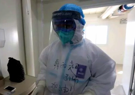 1日,韓丙超隨軍隊支援湖北醫療隊到達武漢火神山醫院。4日,他所在醫院開始正式收治新型冠狀病毒感染的肺炎患者。提到為何在防護服上寫“湖北姑爺”幾個字時,韓丙超表示,主要是想拉近與患者的心理距離。這里的患者大部分是湖北人,患者患上“新冠肺炎”,心里難免會產生焦慮。如果他們看到這幾個字,會感覺自己和他們是有關系的,心里就會放松,消除緊張感,這樣有利于病情的治療。