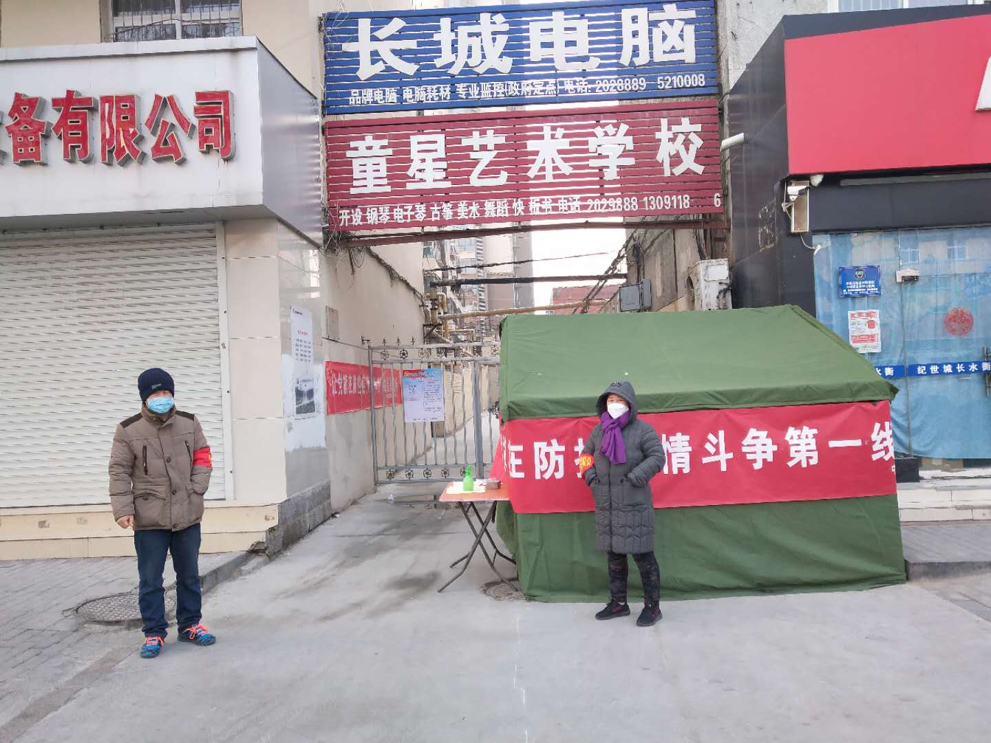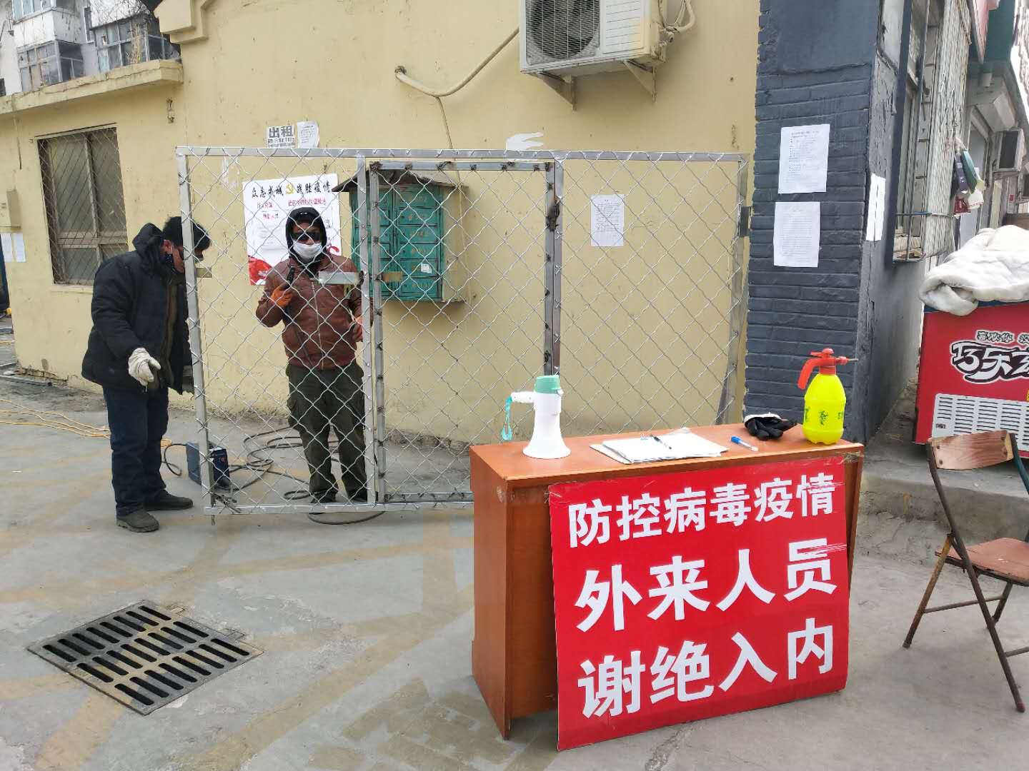隨后,記者來到中華街道辦事處平安里居委會協(xié)興住宅院。該小區(qū)有兩棟樓,住戶約70戶。三天前,中華辦派人為該小區(qū)安裝了大門。志愿者周秀清、李占平在小區(qū)門前值守。每天,她倆從早上6時一直守到晚上22時,登記社區(qū)人員進出信息,給他們測溫,提醒盡量減少外出活動,注意個人衛(wèi)生和防護。如有居民深夜出去,就給她們打電話開門。中華辦副主任魏雪梅說,中華辦一周內(nèi)修理、更新、添置53個大門。中華辦對沒有物業(yè)管理的小區(qū)都安排專人值班,實現(xiàn)了全封閉管理。