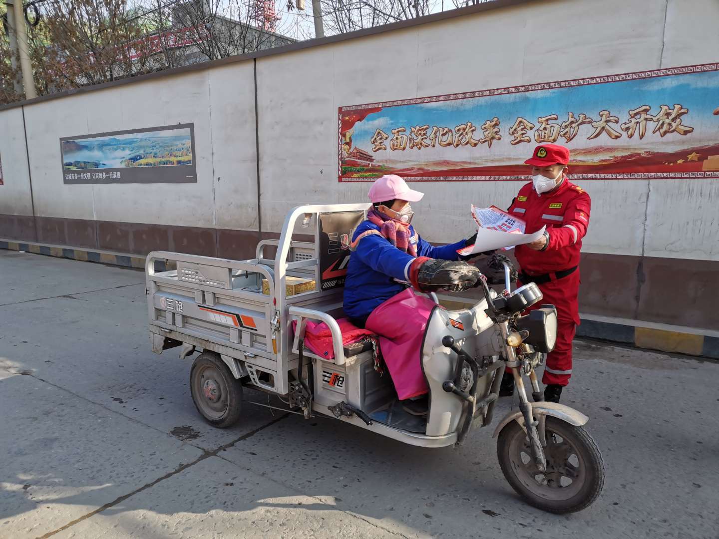 “您好,請您看一下,感冒、流感和新冠肺炎是這樣區分的……”近日,在人民路育才街交叉口,數十名志愿者戴著口罩,拿著宣傳頁向路過的市民講解疫情防控相關知識。