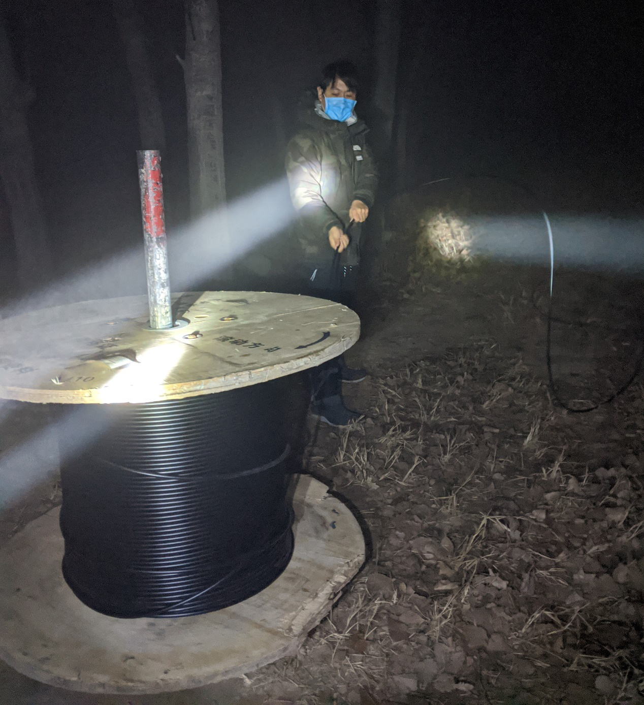 當人們還在溫暖的睡夢中,移動公司維護員崔志鵬和同事們頂著濃霧,借著手電筒的微光,正在修復大麻森鄉被車輛掛斷的光纜。疫情期間,家家戶戶不便出門,居家娛樂離不開網絡,早一點修復對客戶的影響就少一分。由于施工人員不足,他們就自己頂上,布纜、熔纖、收光……這時候真的感謝平時工作的積累不至于關鍵時刻手忙腳亂。
