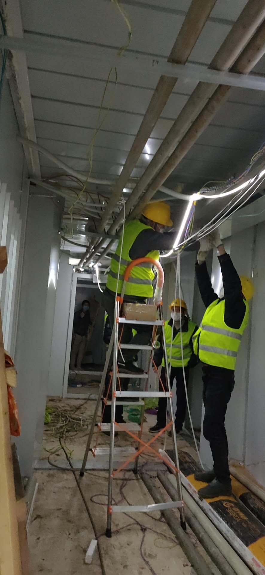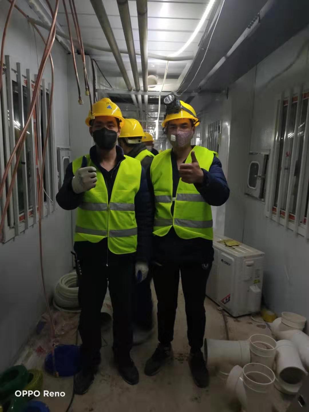 2月10日早上5時,張濤、張燁、谷耀利三人歷時9個小時抵達(dá)武漢,只短暫休整了兩個小時就投入到雷神山醫(yī)院的援建工作中,他們負(fù)責(zé)醫(yī)院三區(qū)的電力設(shè)施安裝工作。