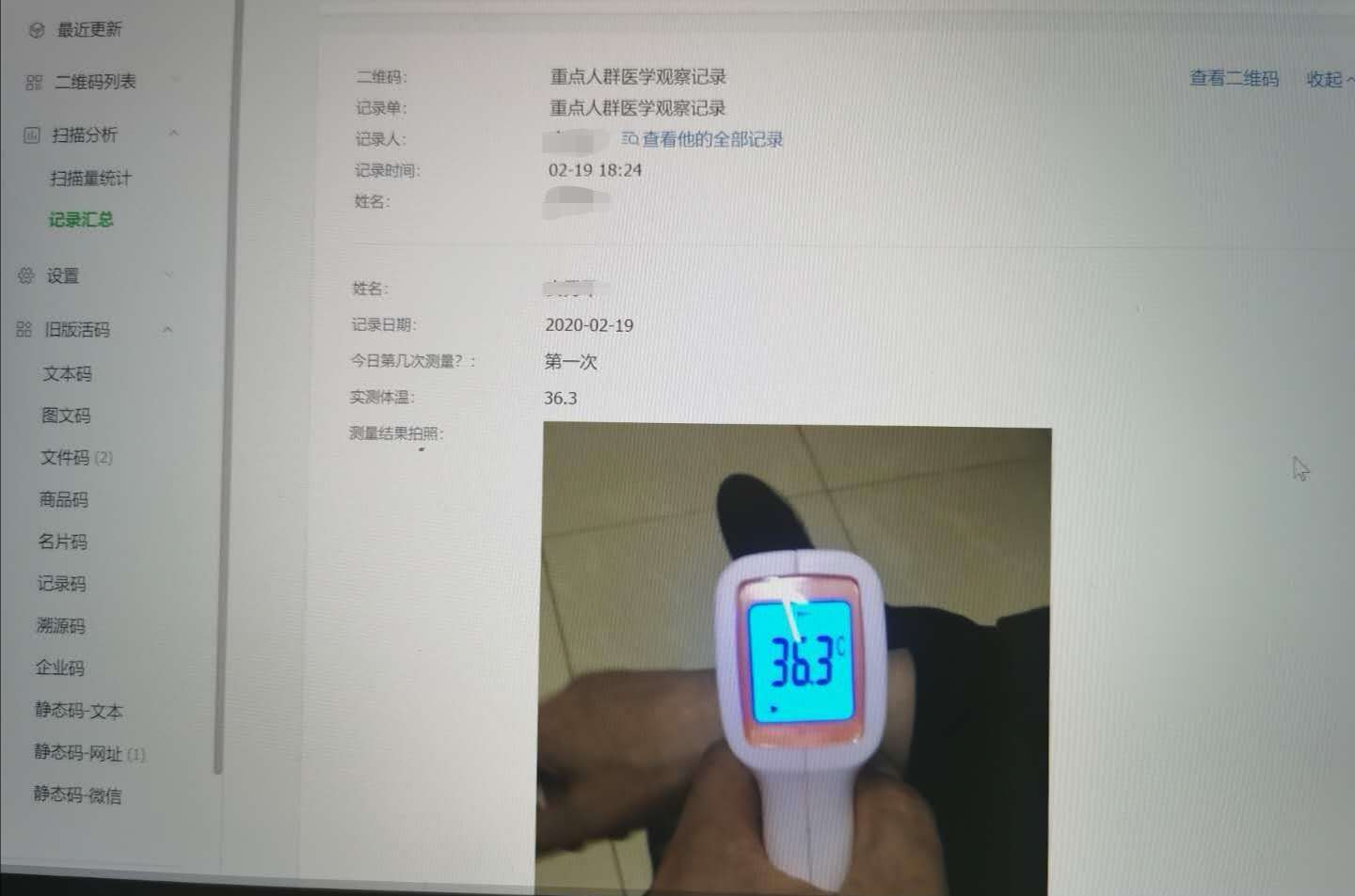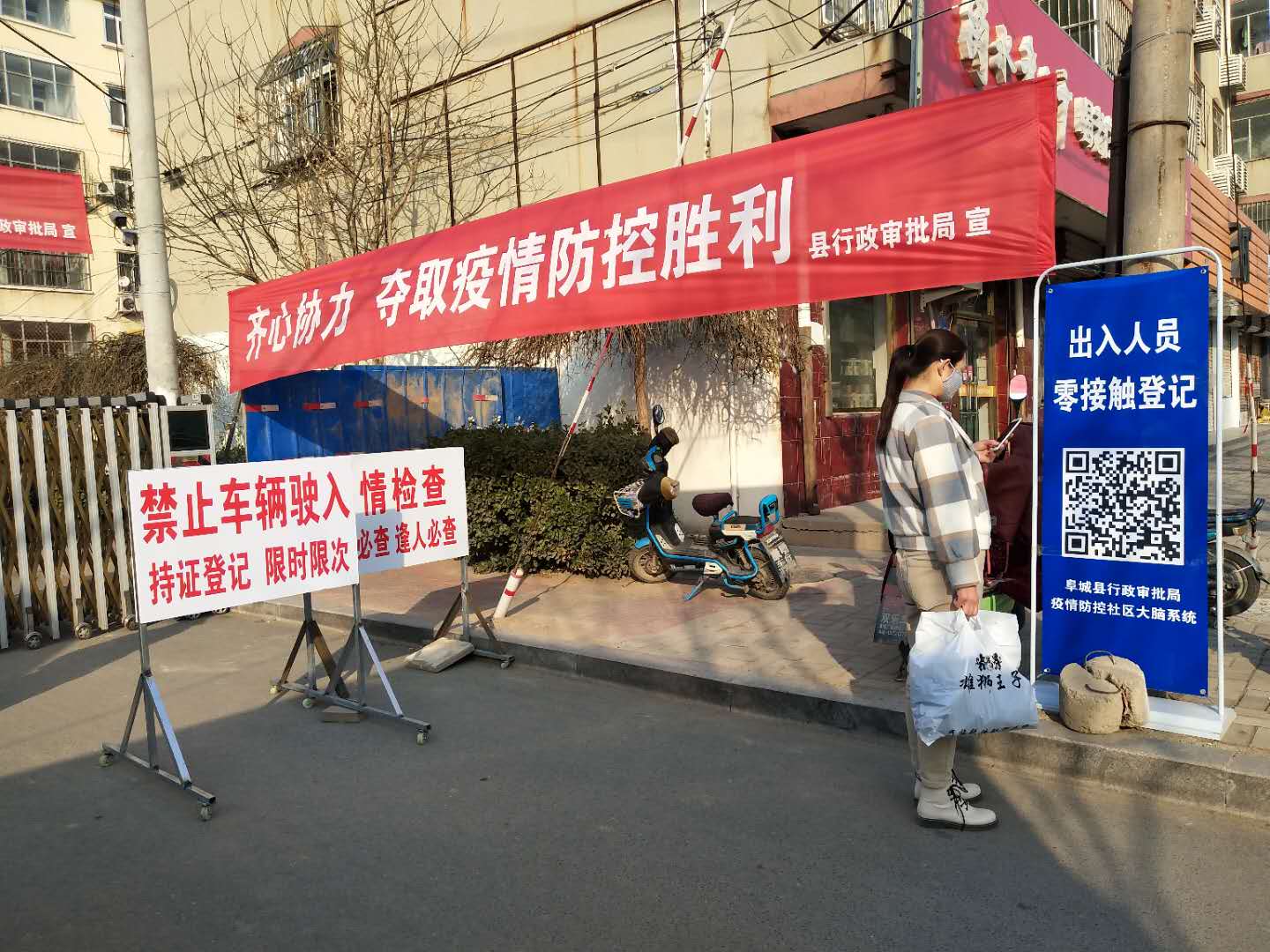 19日,在阜城縣東苑小區的防控檢查崗,居民郝永軍在“社區大腦”二維碼上掃描后,后臺就顯示出他的外出、家庭消毒及家庭人員癥狀等多條信息。“咱這樣的防控模式非常好,不僅十分方便,還能實現零接觸防控,給‘社區大腦’點贊!”
