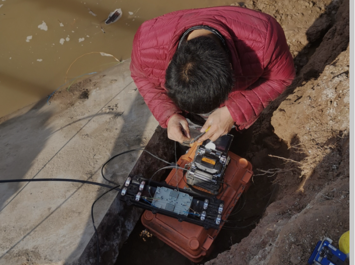 經(jīng)排查,故障是由于村內(nèi)挖排水溝取土?xí)r,不慎將地下光纜挖斷造成兩處斷點(diǎn)。楊志剛一邊指揮搶修人員克服現(xiàn)場惡劣條件,在水溝邊搭出一個(gè)簡易的搶修接序臺(tái),一邊聯(lián)系村委會(huì),通過大喇叭廣播告知村民正在搶修網(wǎng)絡(luò),讓大家不要著急。