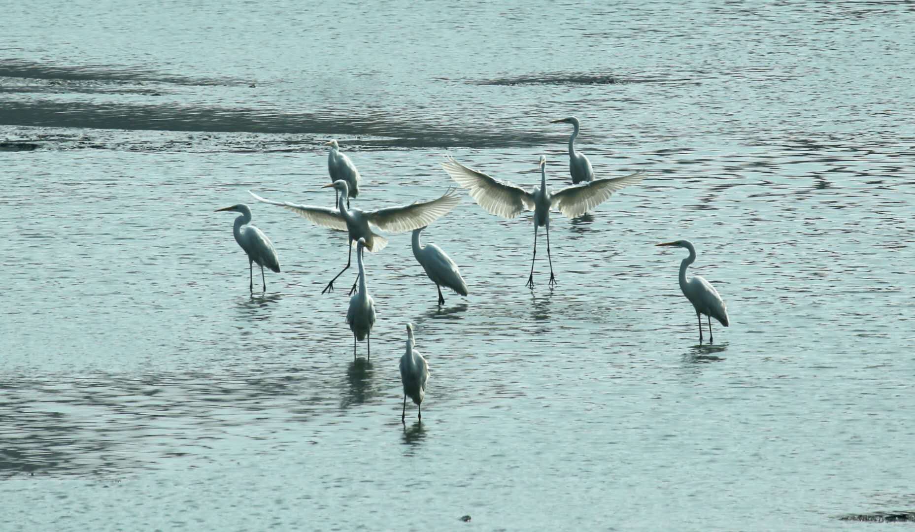 近日,在滏陽河市區段河面上時常會看到成群的白鷺接翼而飛,成為一道別致的風景。它們時而嬉戲覓食,時而翩躚而舞,形成了人與自然和諧共生的美麗畫面。