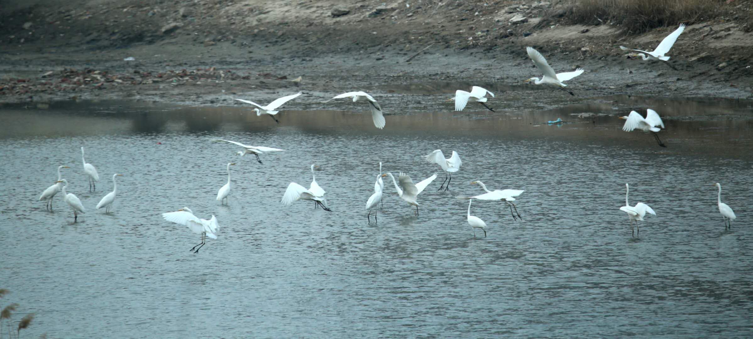 記者從滏陽河管理處了解到,眼下正值滏陽河黑臭水體治理即衡水市滏陽河(干馬橋—大西頭閘段)水環境生態治理階段,隨著河道清淤及底泥處理工作的推進,從春節前夕就有白鷺陸陸續續地來到滏陽河市區段北段捕食,最近,永興橋兩側又出現了約50只左右的白鷺。