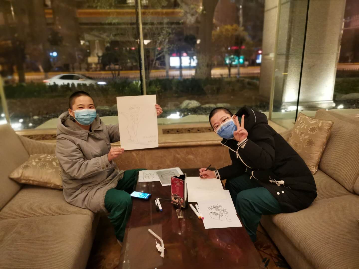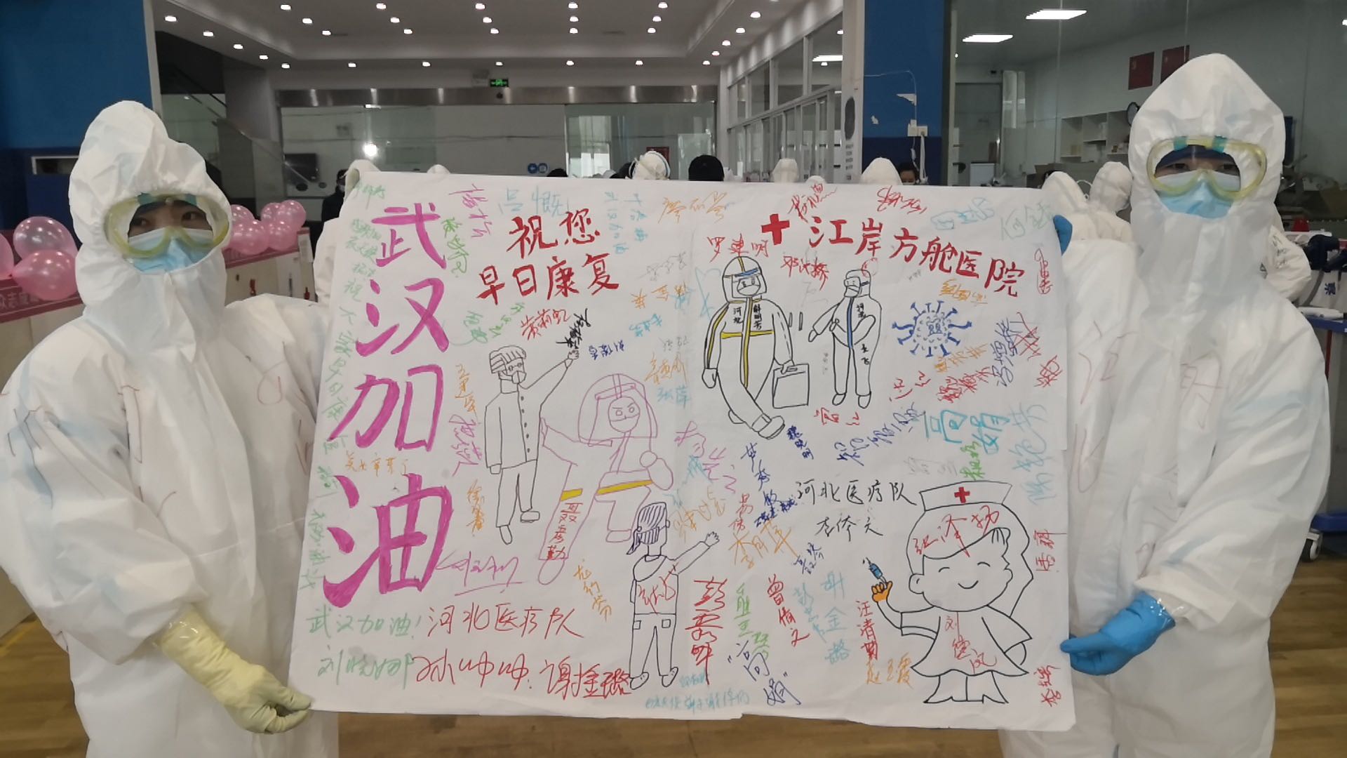 這兩天,幾張繪有深州蜜桃、衡水中學校徽的戰疫卡通畫,以及幾幅帶有武強年畫色彩的剪紙作品,出現在武漢江岸方艙醫院醫護通道的墻面上,這些出自我市支援湖北醫療隊“美小護”之手的作品雖略顯簡單,卻緩解了患者們入院后緊張的心情。
