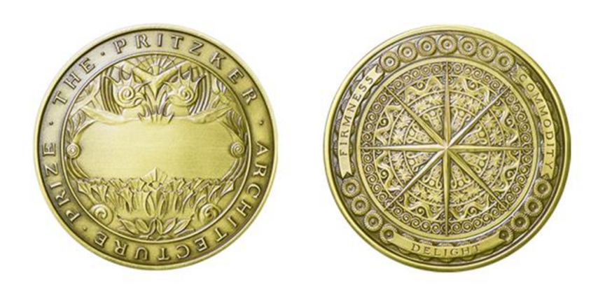 按照慣例,獲獎者可獲10萬美元、一份證書和一枚銅質獎章。獎章正面圖案以芝加哥著名建筑師路易斯·沙利文(Louis Sullivan,沙利文是芝加哥著名的建筑師和公認的摩天大廈之父)的設計為基礎,刻有“The Pritzker Architecture Prize”(普利茲克建筑獎)字樣,獲獎者的姓名刻在獎章正中,獎章背面刻著亨利·沃頓1624年在其《建筑的要素》一書中提出的建筑的三個基本條件:“堅固、實用、愉悅”。截至目前,該獎項已持續頒發42年,共有47位建筑師獲獎。