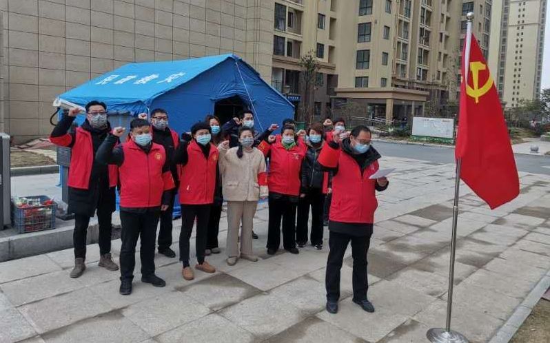 在張濤3月7日發的朋友圈中,他和其他社區志愿者一起,在鮮紅的黨旗下重溫入黨誓詞。張濤說:“我是2012年在部隊光榮入黨,疫情防控需要逆行者沖向一線,不管是援建雷神山,還是做一名小區防控員,作為一名共產黨員我都義不容辭。”