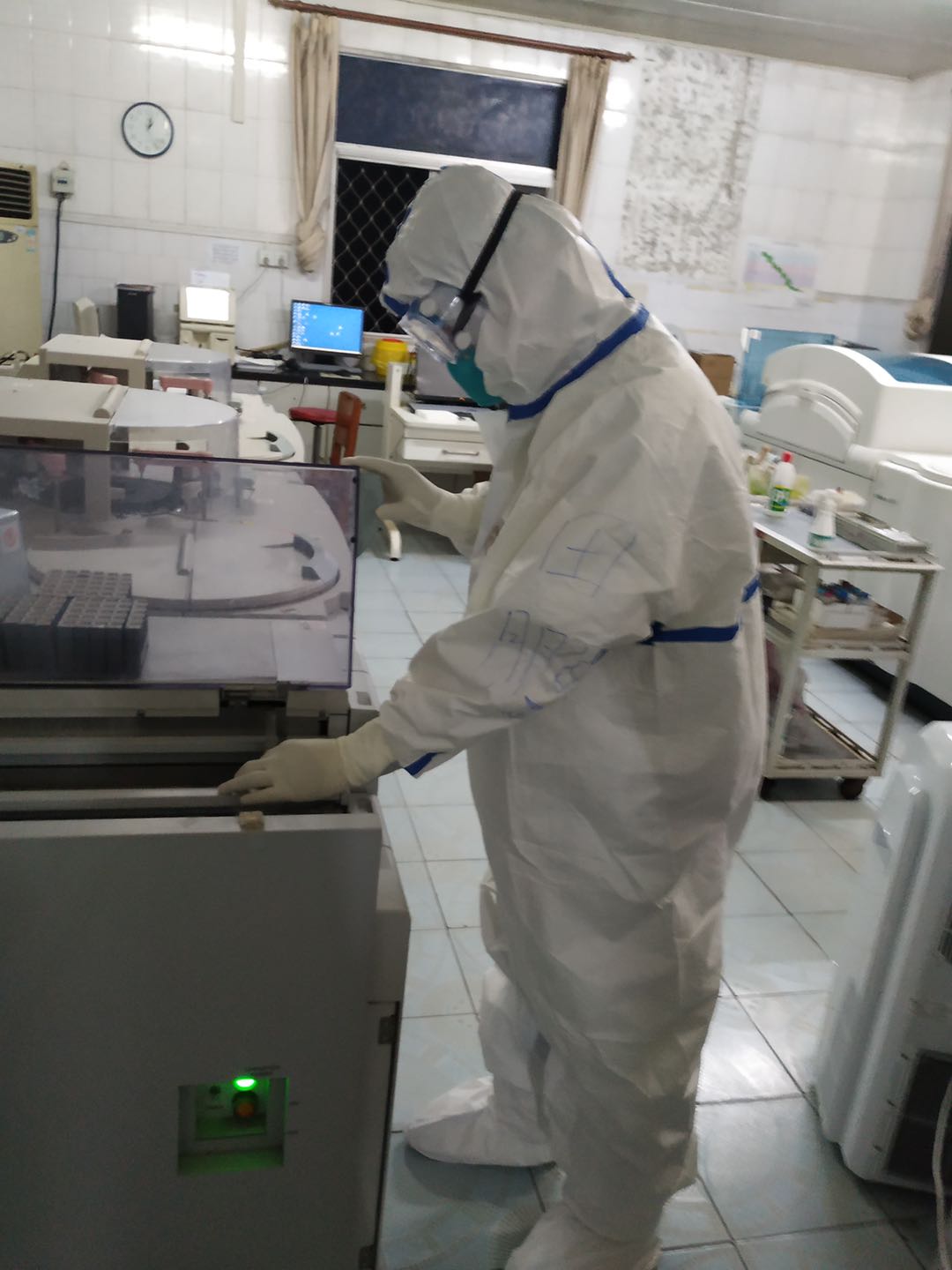 在不足5平方米的檢驗室中,為了給患者爭取治療時間,田鵬憑借多年的檢驗技術,再動腦筋,提高樣本檢驗速度,將原本30分鐘的檢驗過程縮短到不足2分鐘,在8小時的時間內,他像機器一樣分秒必爭,完成著對260多個樣本的檢驗。面對繁雜的檢驗任務,他說:“一個樣本就是一個生命!”