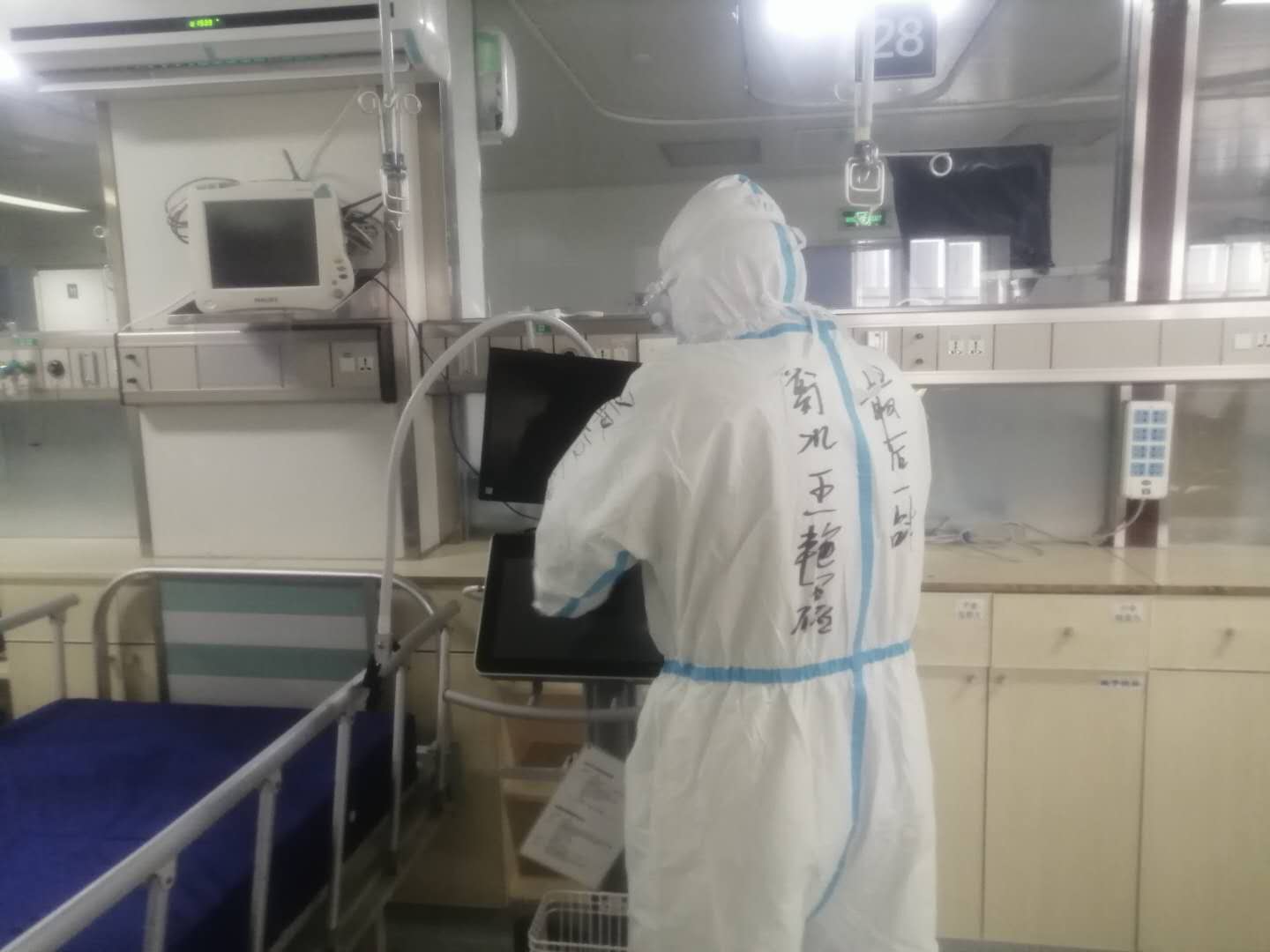 14日,重癥監護室最后一批重癥患者被轉送至武漢市肺科醫院,當天下午,王艷磊在崗消殺、整理病歷,完成這些后,重癥監護室將正式交還到武漢第七醫院,這也意味著,在他們的醫療援助下,該院新冠肺炎患者收治醫療任務圓滿完成。