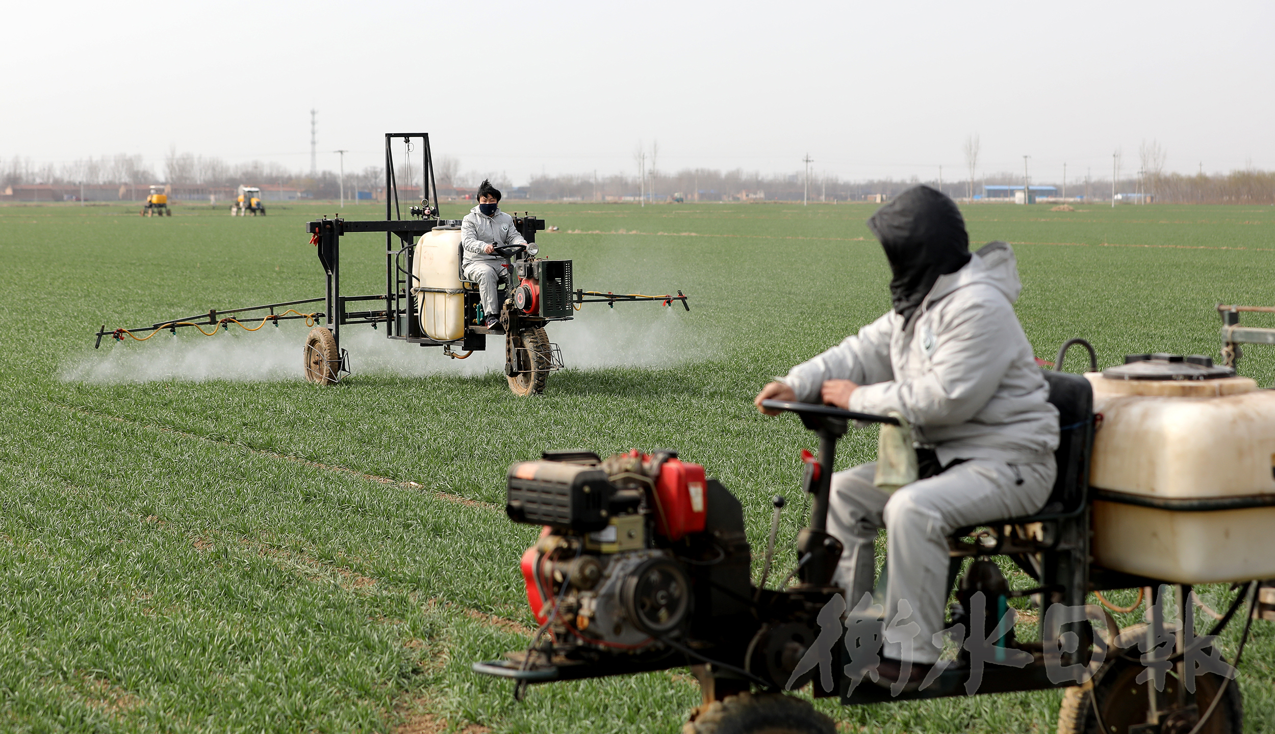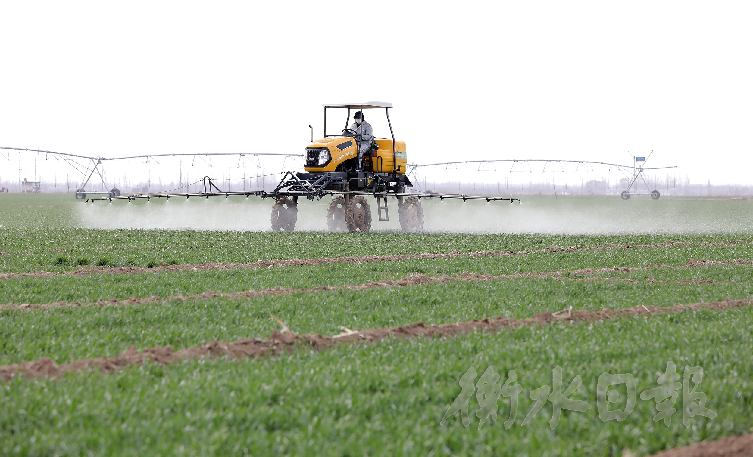 景縣志清種植農民專業合作社在進行麥田除草機械化作業。