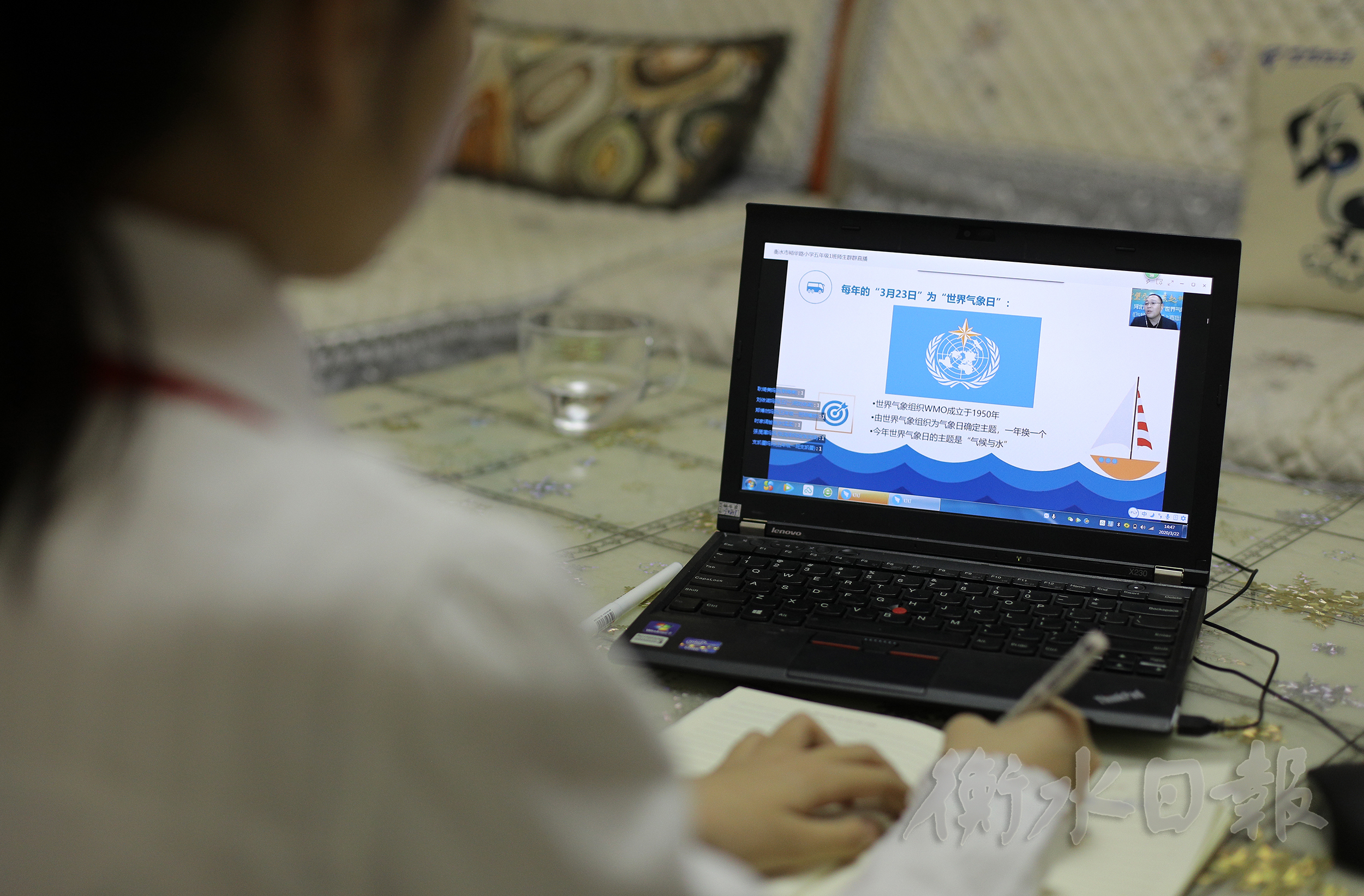 3月22日,衡水市裕華路小學組織學生在家中通過直播認真學習氣象知識。