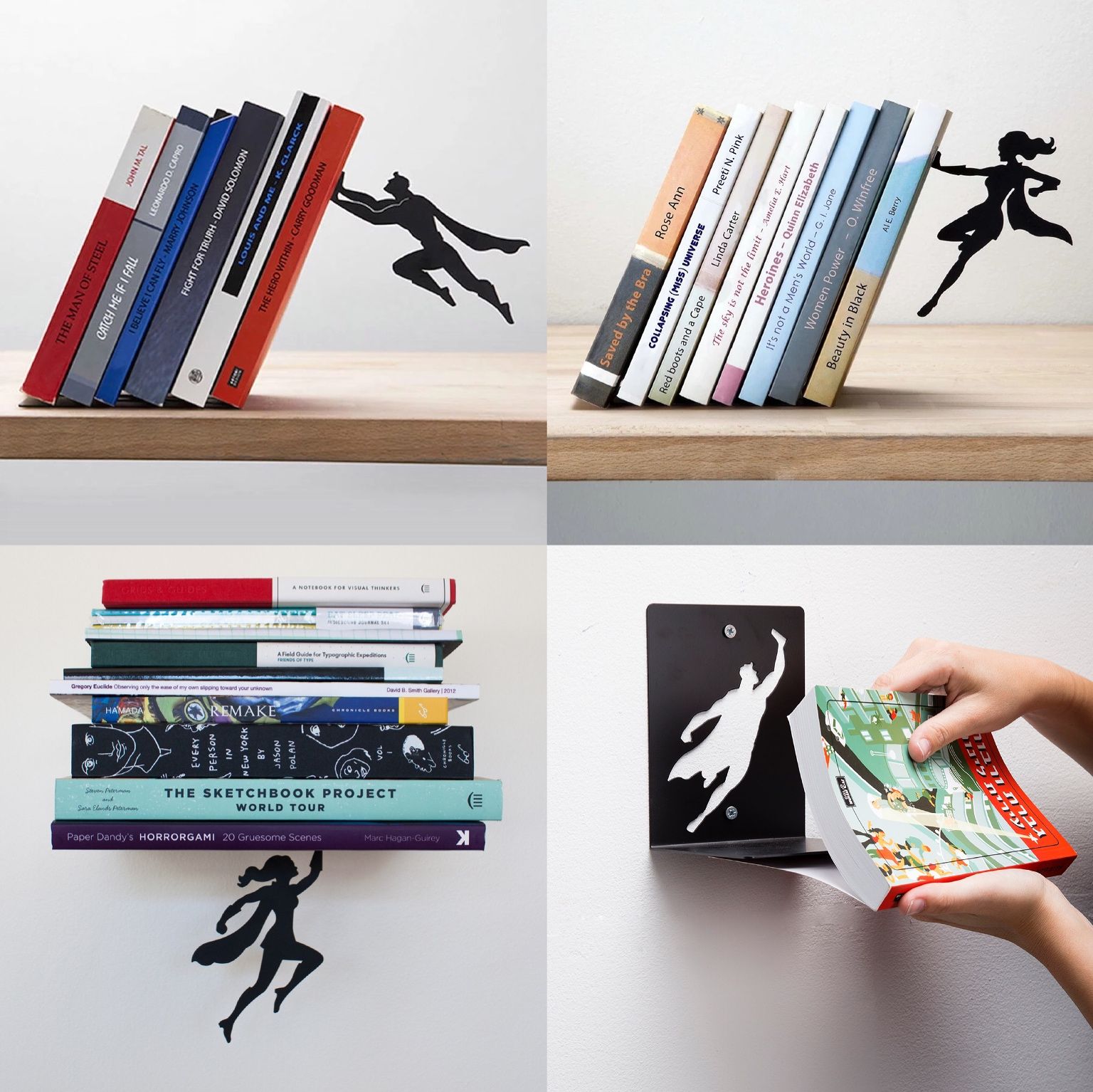 “超級英雄”來了,來幫你收納到處亂丟的圖書。這款以色列Artori Design設計工作室出品的書立,讓超人造型的小人可以神奇地懸空推動仿佛馬上就要傾倒的書。這個造型得益于超人身上的微型磁鐵,部分書立被圖書封面隱藏,你看到的就是一副“力挽狂瀾”的樣子。