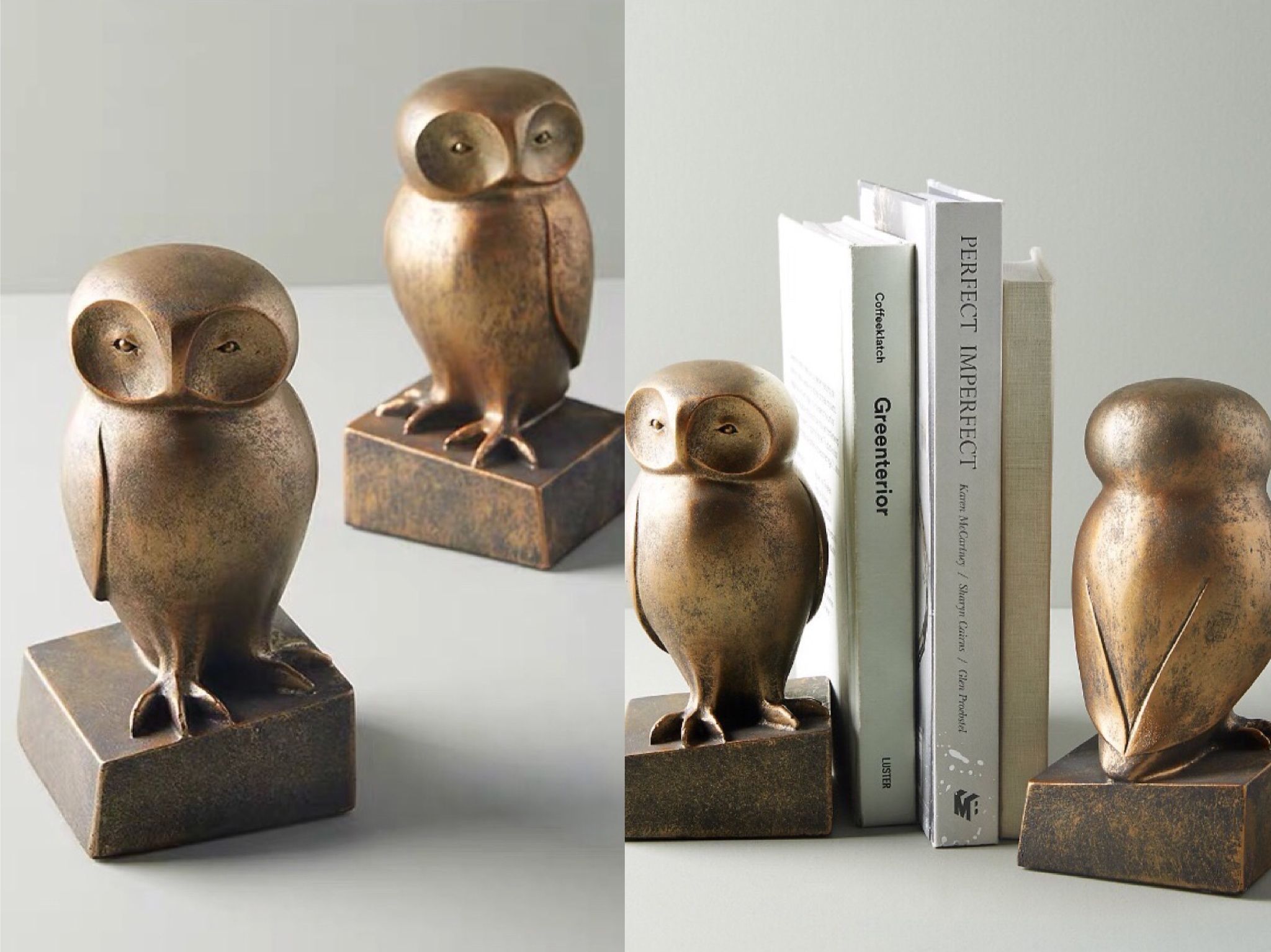 貓頭鷹的樣子很“警惕”,仿佛臉上寫著“概不外借”,但是“警惕”的表情中又充滿了呆萌。雖然是仿黃銅的外表,但實際是質感十足的樹脂材質。用這樣的“貓頭鷹”幫你看守心愛的藏書,是不是感覺很安心?