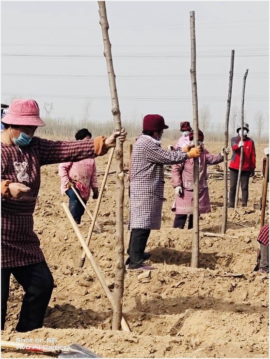 開溝、種苗、填土……不誤農時不負春,朝前鋪村村南望去,十幾位村民正有序地種植欒樹。