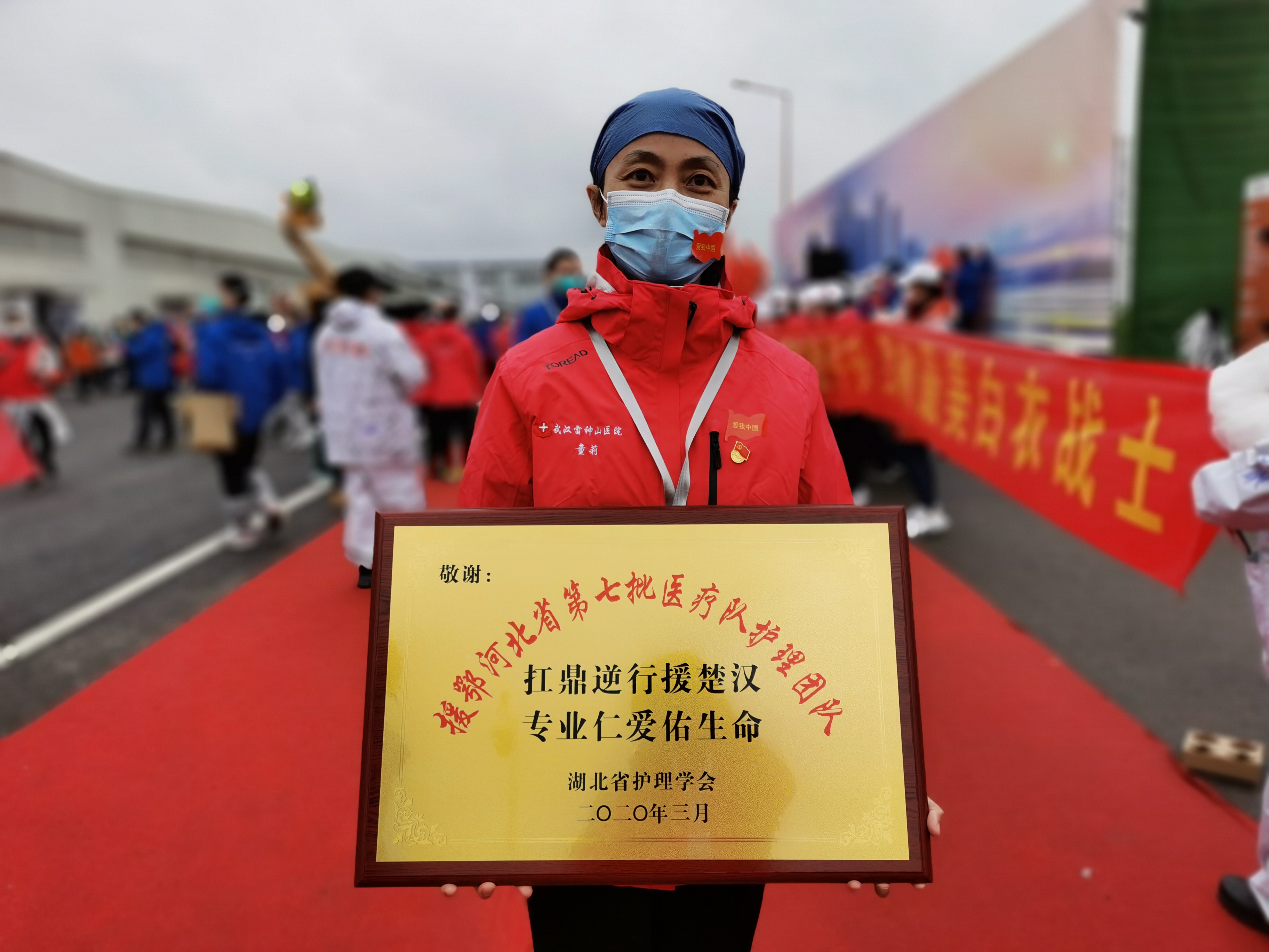 童莉是醫療隊中最年長的一位,大家都親切地稱呼她為“童大姐”。2月17日,河北省衛健委組派第七批河北支援湖北醫療隊,她得知馳援醫院急需業務嫻熟、懂管理的護理管理人員時,毫不猶豫地報了名。抵達武漢后,“童大姐”被任命為河北省第七批醫療隊護理部主任,她發揮自己多年的護理工作管理經驗,積極與河北省醫療隊領導溝通協調,梳理護理人員信息,由她帶領的河北醫療團隊受到武漢患者及醫護同行的高度贊揚。