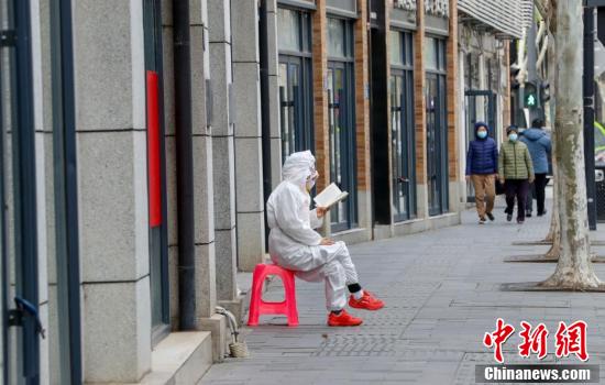 市民坐在漢口中山大道街邊看書。
