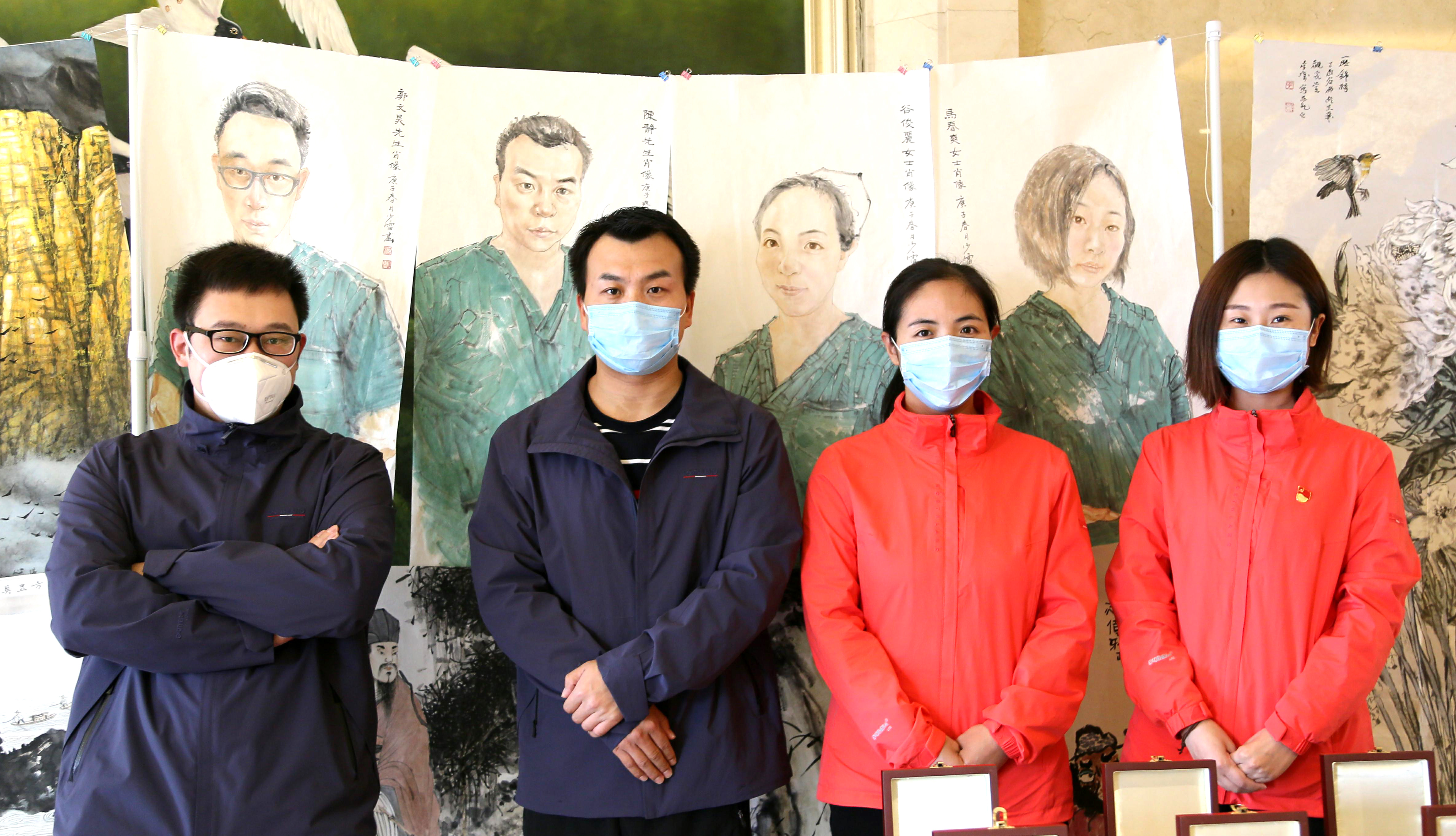 下午1時許,由醫(yī)護人員所在醫(yī)院派來的大巴車緩緩駛?cè)胩┤A博悅酒店內(nèi),車上懸掛的一條條寫有“致敬英雄、歡迎回家”“病毒無情、白衣有愛、歡迎英雄凱旋”等真摯話語的條幅格外醒目。“你們辛苦了,歡迎回家!”各縣市區(qū)相關(guān)部門的負責人專程來迎接“逆行天使”回家。歡送儀式上,衡水市美術(shù)家協(xié)會、市書法家協(xié)會、衡水內(nèi)畫藝術(shù)博物館、市青聯(lián)專門為醫(yī)療隊員們贈送了藝術(shù)品和慰問物品。