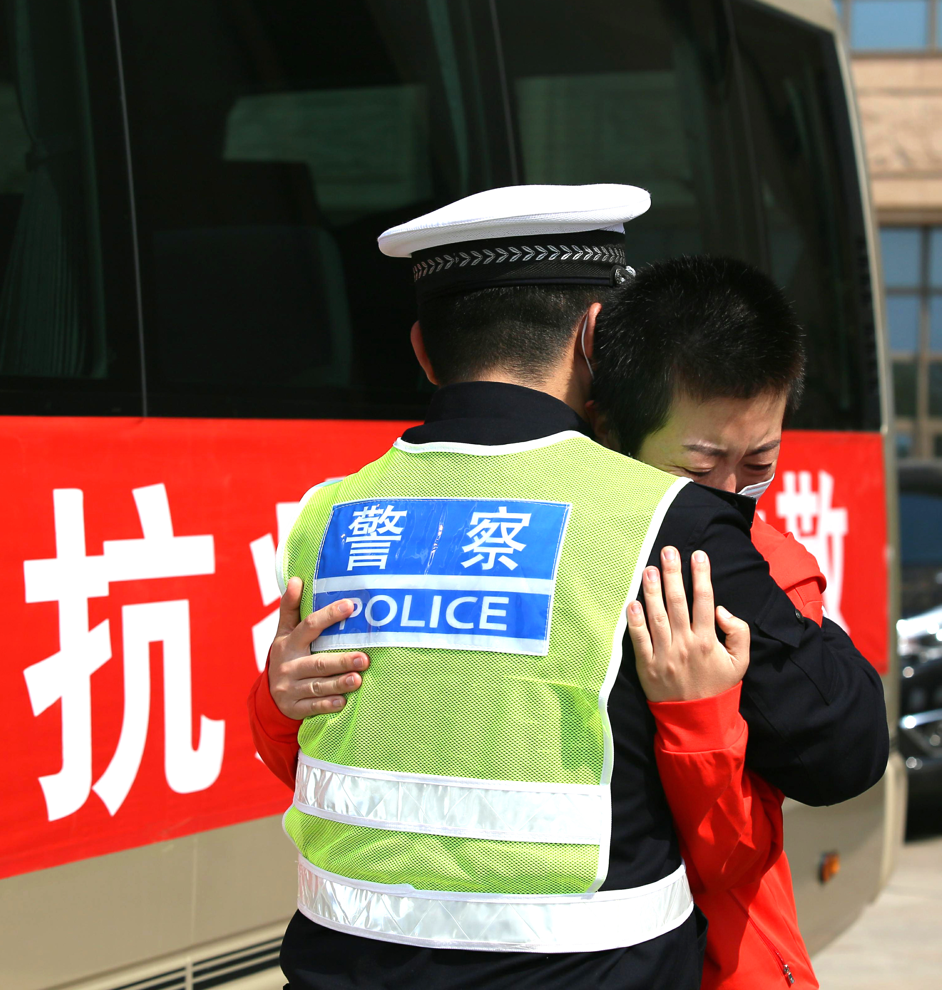 同樣驚喜而又激動的還有武邑縣醫院的張玲玲。在縣里派出接送他們回程的大巴車旁,她的弟弟、武邑縣交警大隊的張海盈已經等了許久。“我們負責護送他們回武邑縣,因為是臨時安排,就沒告訴我姐,給她個驚喜。”張海盈所料沒錯,張玲玲剛走到大巴車處,就看到了已經張開手臂的弟弟。“你怎么來啦?”張玲玲反應慢了半拍——先是驚愕地立在原處,然后哭著一頭撲進弟弟懷里……