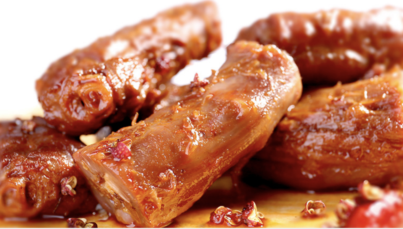 鴨脖子是經過多種香料浸泡,然后風干、烤制等工序制作而成的。做好的鴨脖子有著灼熱的辣味兒、鹵的香味兒,醇厚不膩,吃起來讓人欲罷不能。