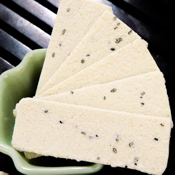 青山麻烘糕是武漢比較出名的糕點,用糯米、黑芝麻、桂花、綿白糖制作而成。從外觀看,糕點呈長方形薄片,白線邊,黑麻芯,口感香、松、脆,甜潤易化。
