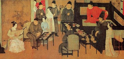 但據(jù)考證,到了北宋,合餐制開始出現(xiàn),最關(guān)鍵的原因是北宋飲食文化的商業(yè)化。食材多元、烹飪樣式增多,極大地豐富了宋代餐桌的菜色,教坊酒樓、勾欄瓦舍等公共飲食空間的出現(xiàn),是中國(guó)民眾飲食文化的一次重要改革。