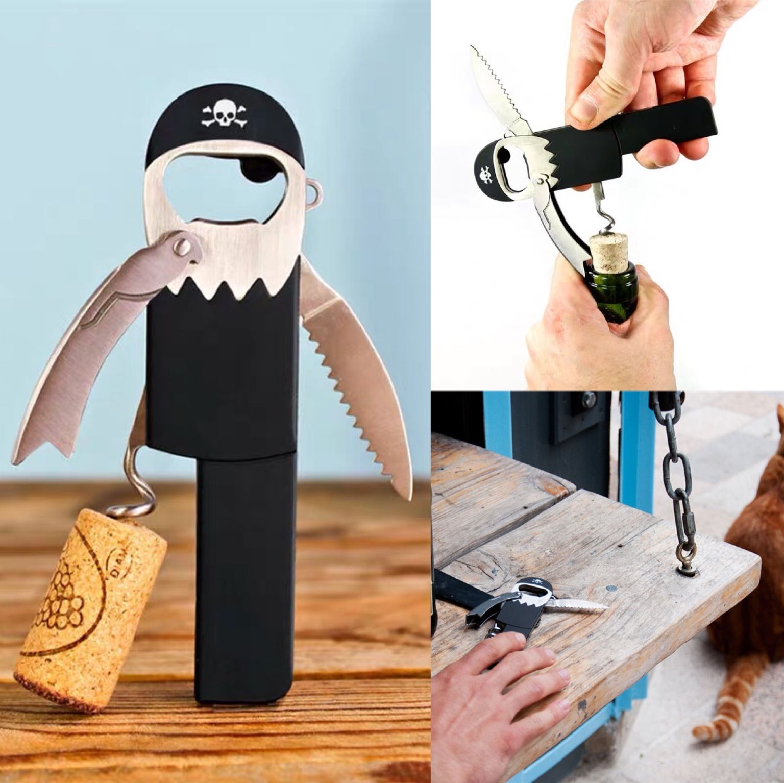 想一個人小酌一杯,紅酒塞往往阻擋了你的愜意時光,那么就讓帥氣的海盜來幫忙吧。經典的“斷腳”正是紅酒軟木塞的開瓶器,酷酷的“臉”還可以用來開啤酒、開汽水,簡直無所不能,霸氣十足。